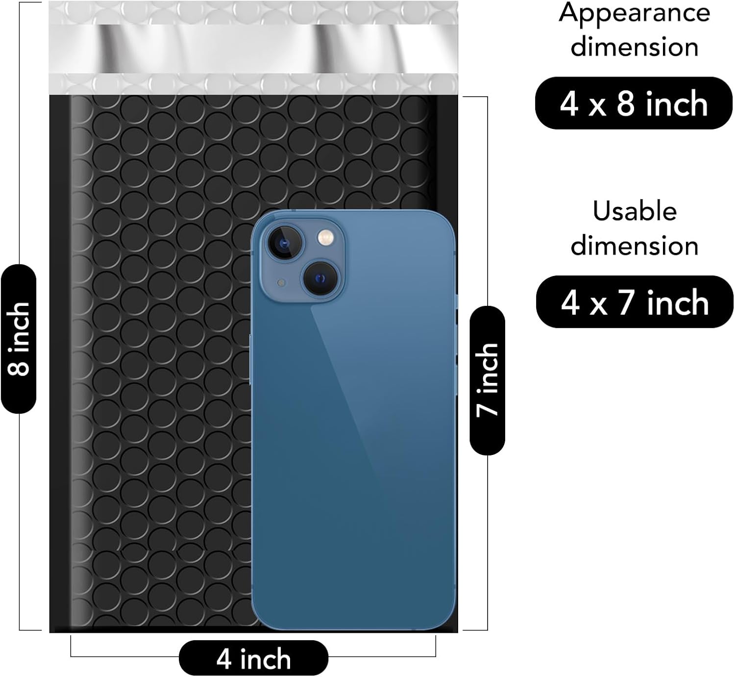 - Perfect Size Black Bubble Mailers: The small bubble mailers outer size is 4x8 inch, while the inner size is 4x7 inch. It is very suitable to transport for jewelry, makeup, cards, phone case, lips, photos,handcraft and more.