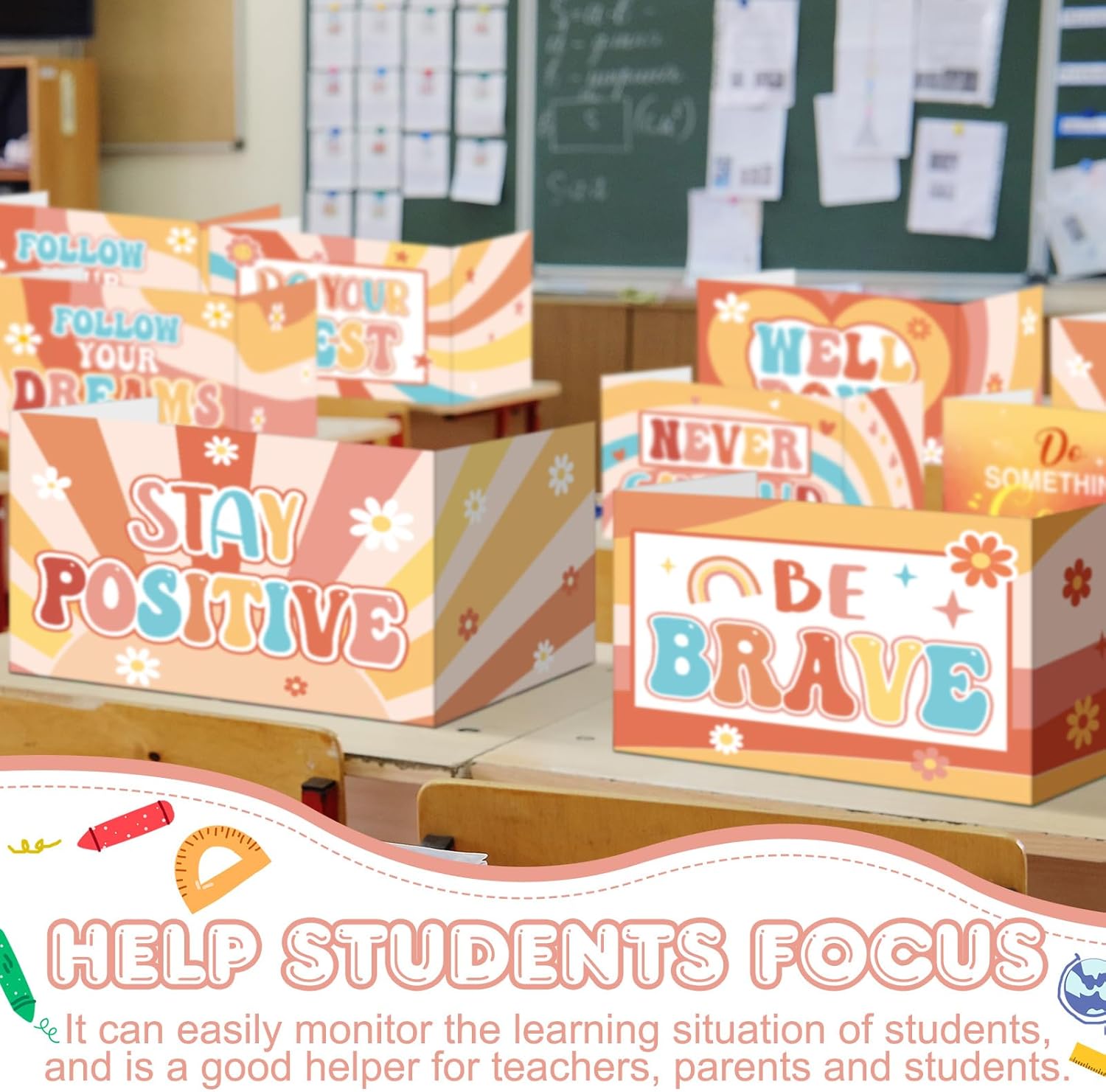 Honoson 24 Pcs Bulk Inspirational Privacy Folders for Students Cardboard Test Privacy Boards Motivational Words Desk Dividers Shield for Classroom School Study Supplies, 6 Styles(Groovy)