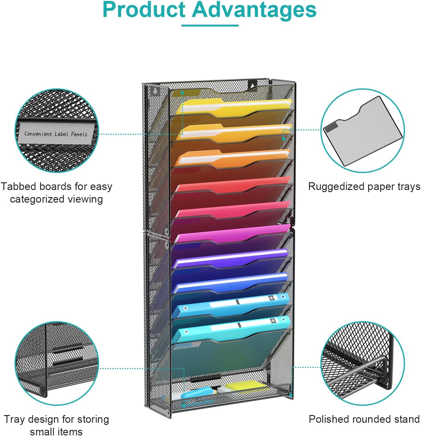 - EXCELLENT OFFICE ORGANIZATION: Widened mesh surface prevents items from falling. In the digital age, paper is still in use, wall organizers help you solve the problem of messy storage