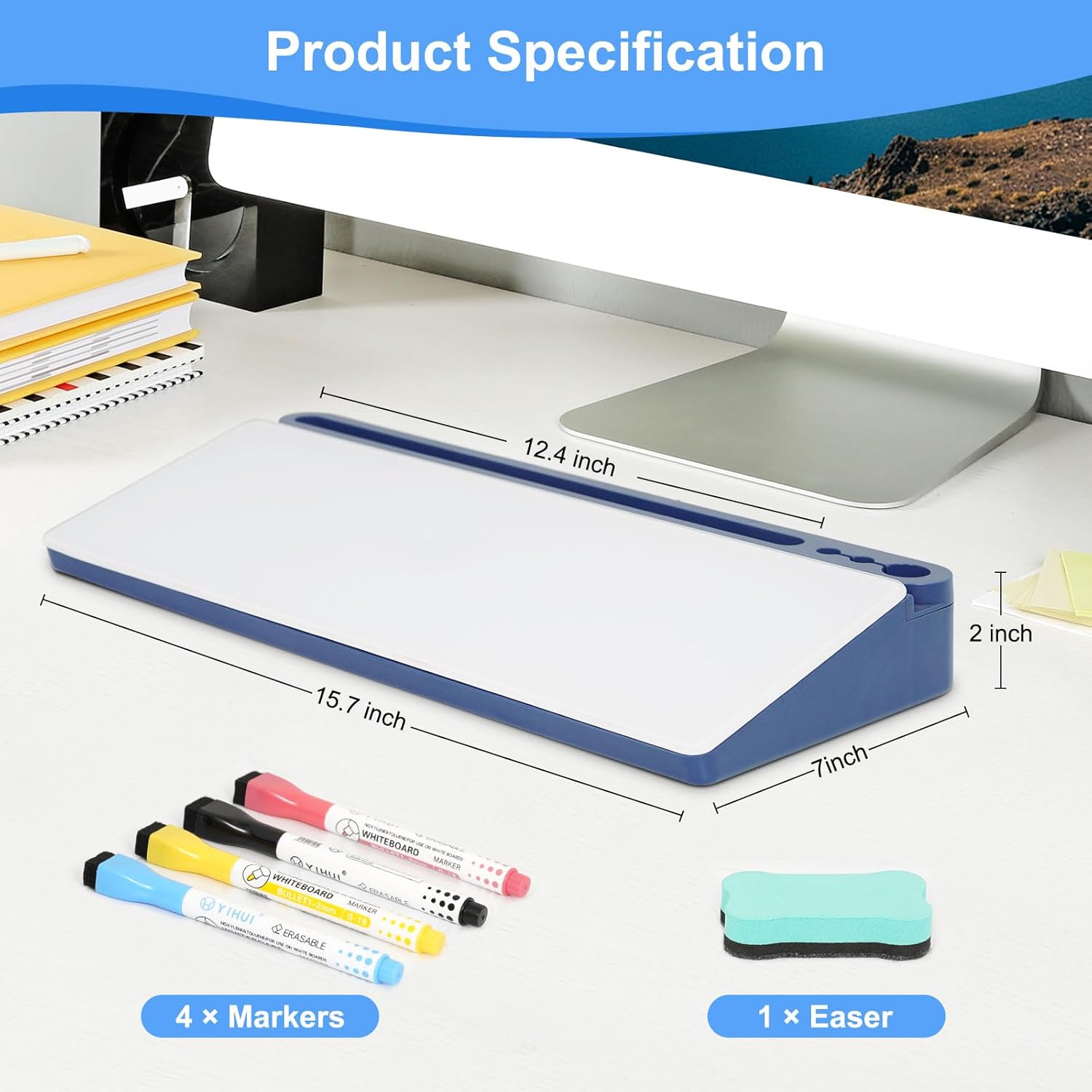 - Multiple Functions - To enhance the overall convenience of the product, this whiteboard includes 1 large pen holder, 2 small pen holders and 1 slot on the top which can hold 3 markers, a tablet and a phone. Equipped with charging port notch in the slot, the desk board is a good option to realize office charging, and you can charge your phone quickly. This dry erase board is more ergonomic with the perfect ramp design and non-slip design, which can make itself be used as keyboard pad.
