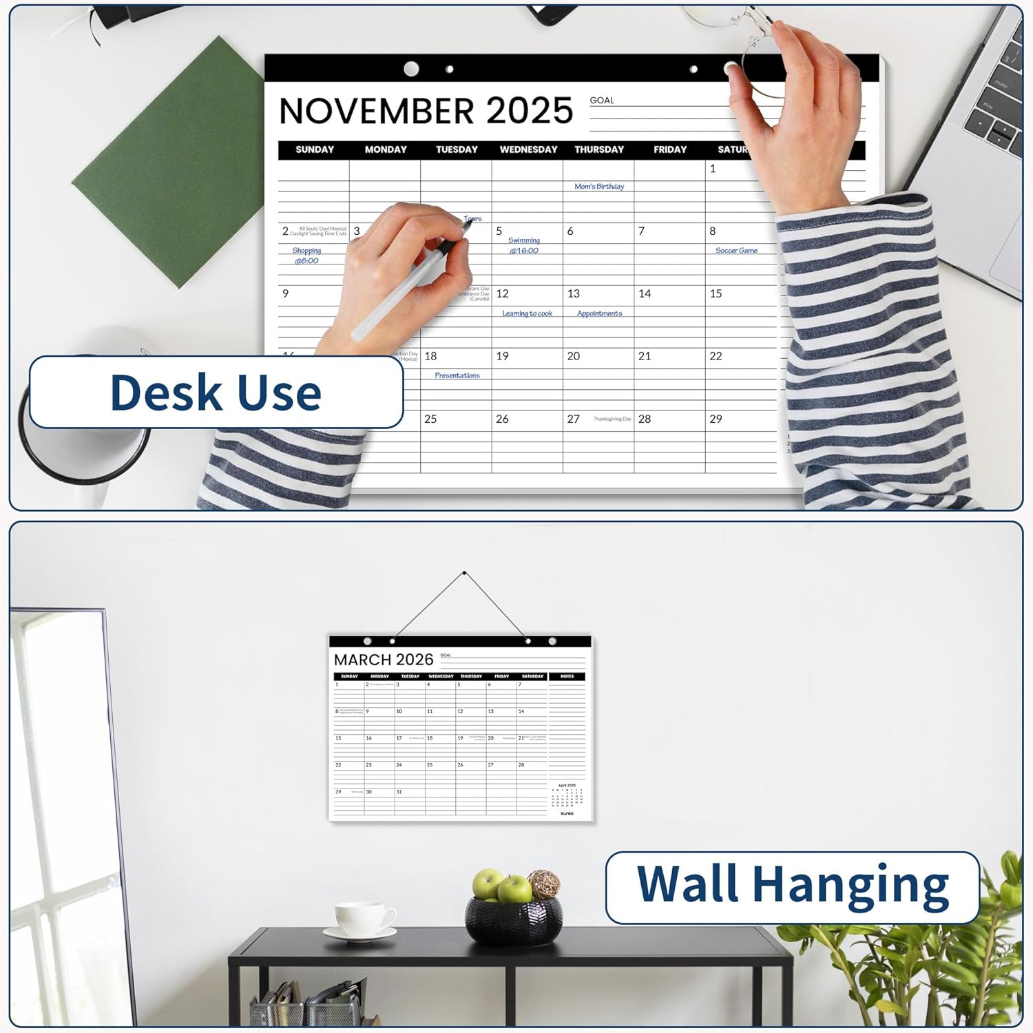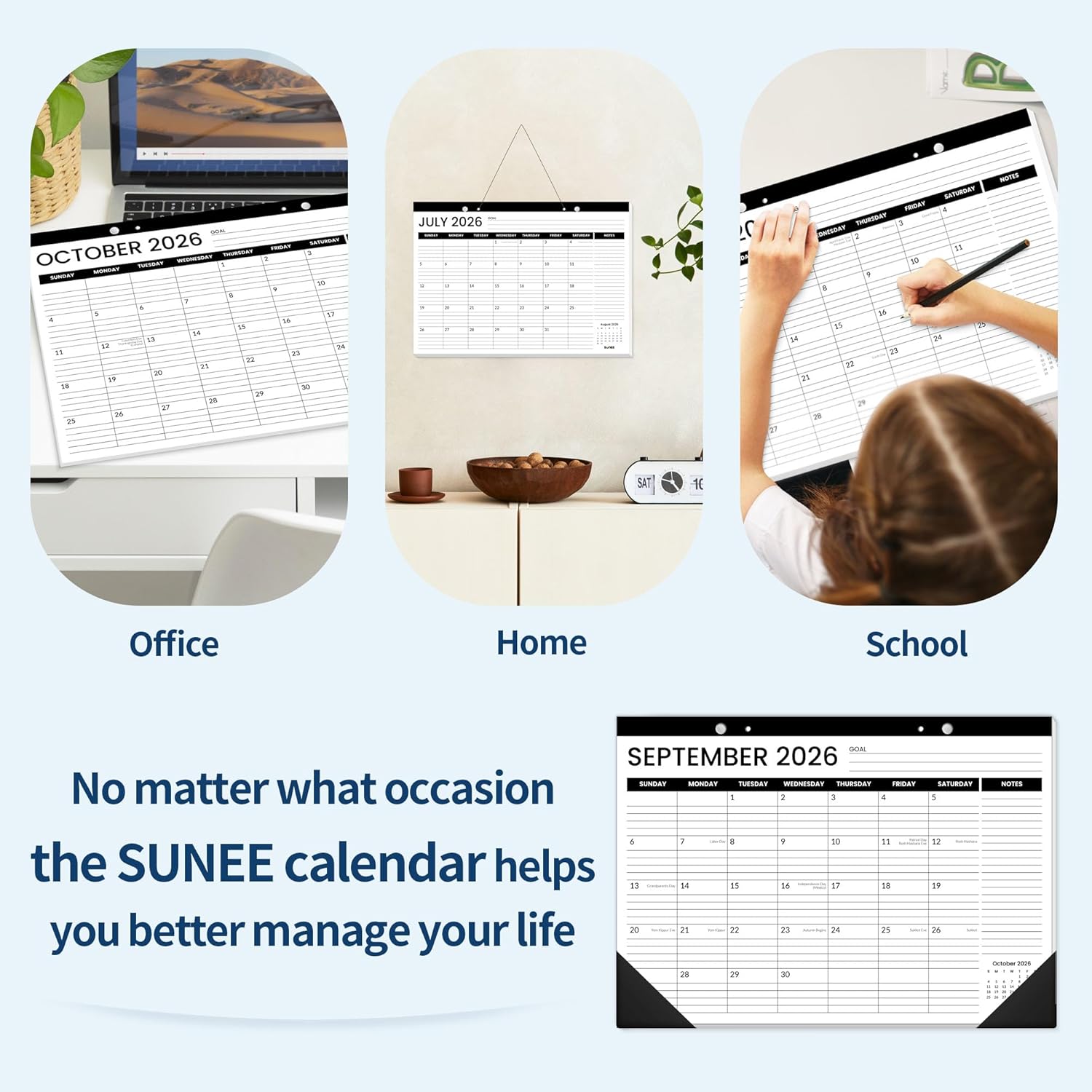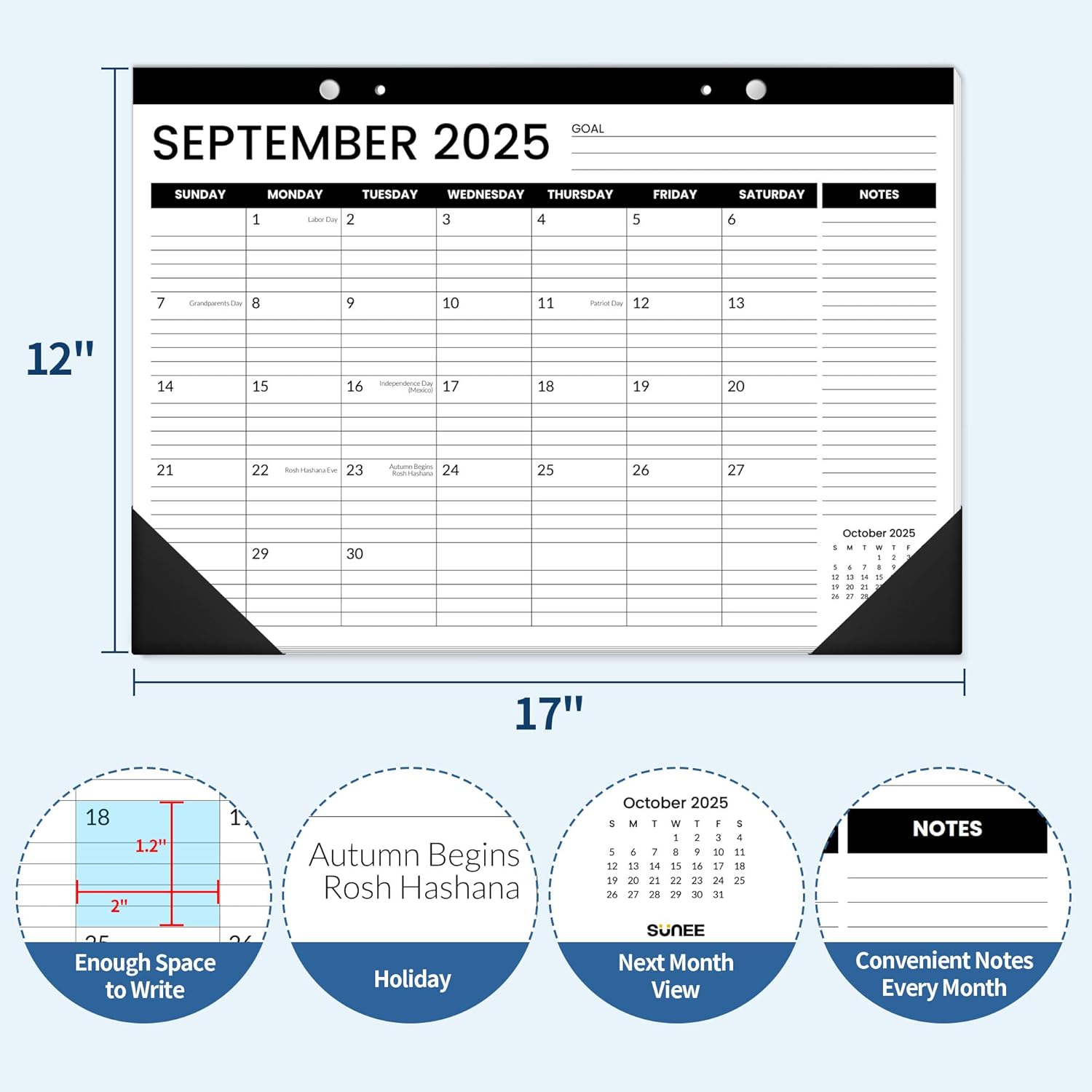 SUNEE Desk Calendar 2025-2026 17x12, 18 Months, JUL. 2025 - DEC. 2026, Academic Calendar 2025-2026, School Year Large Desktop Calendar Monthly for Teacher, Black with Note