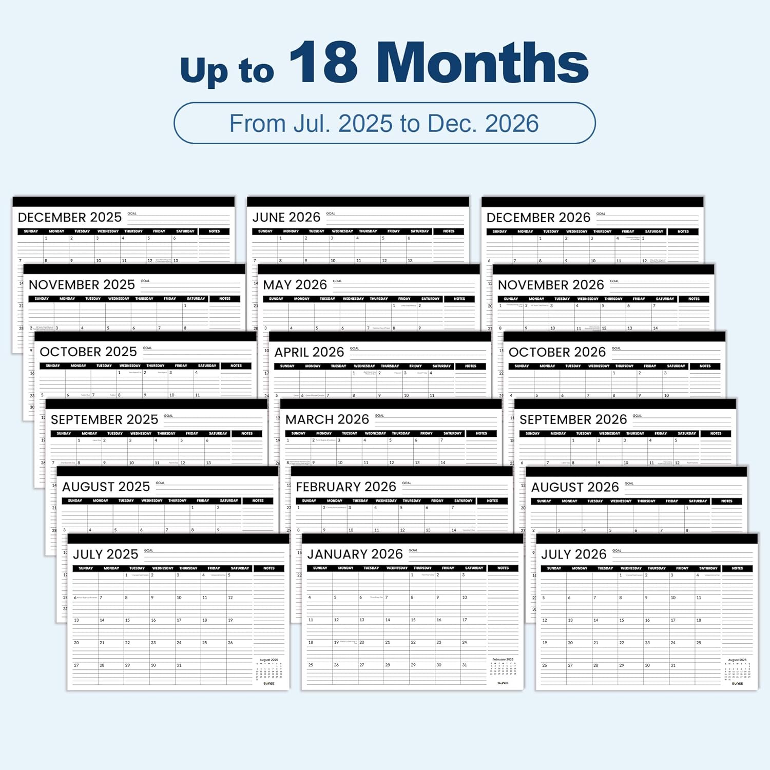- 18 Months: From July 2025 to December 2026. A powerful management tool for you to write your goals, appointments and events