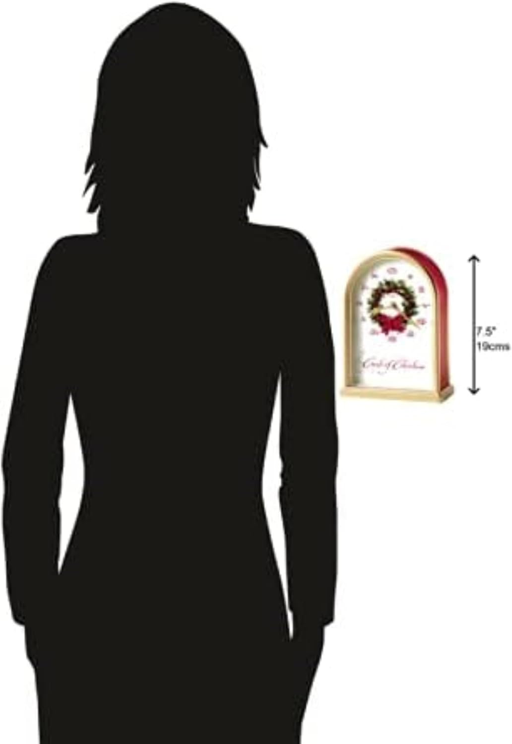 - With a satin brass finish, this Christmas clock features a beautiful, festive wreath wrapped around the dial