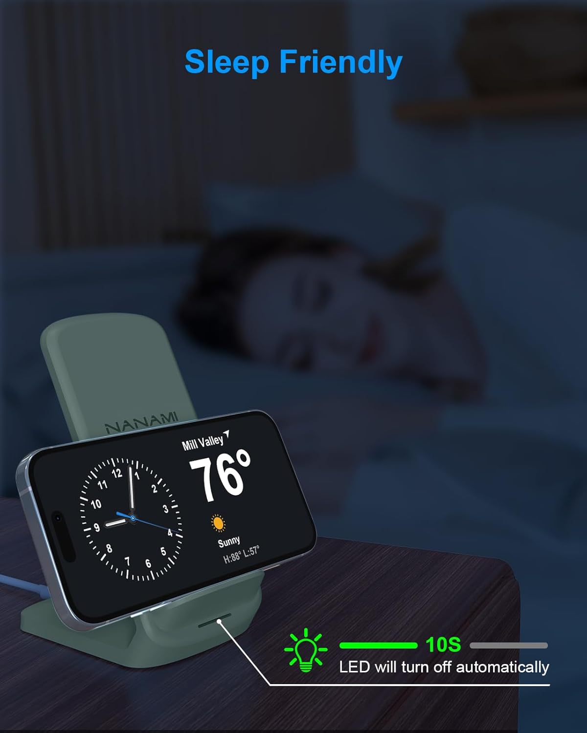 - [No Wires, No Beeps, No Lights]: Sleep-friendly, no more tangled up wires, beeping sounds and annoying lights with this upgraded fast wireless charger! Its LED indicator will automatically shut off after 10 seconds for your sweet sleep.
