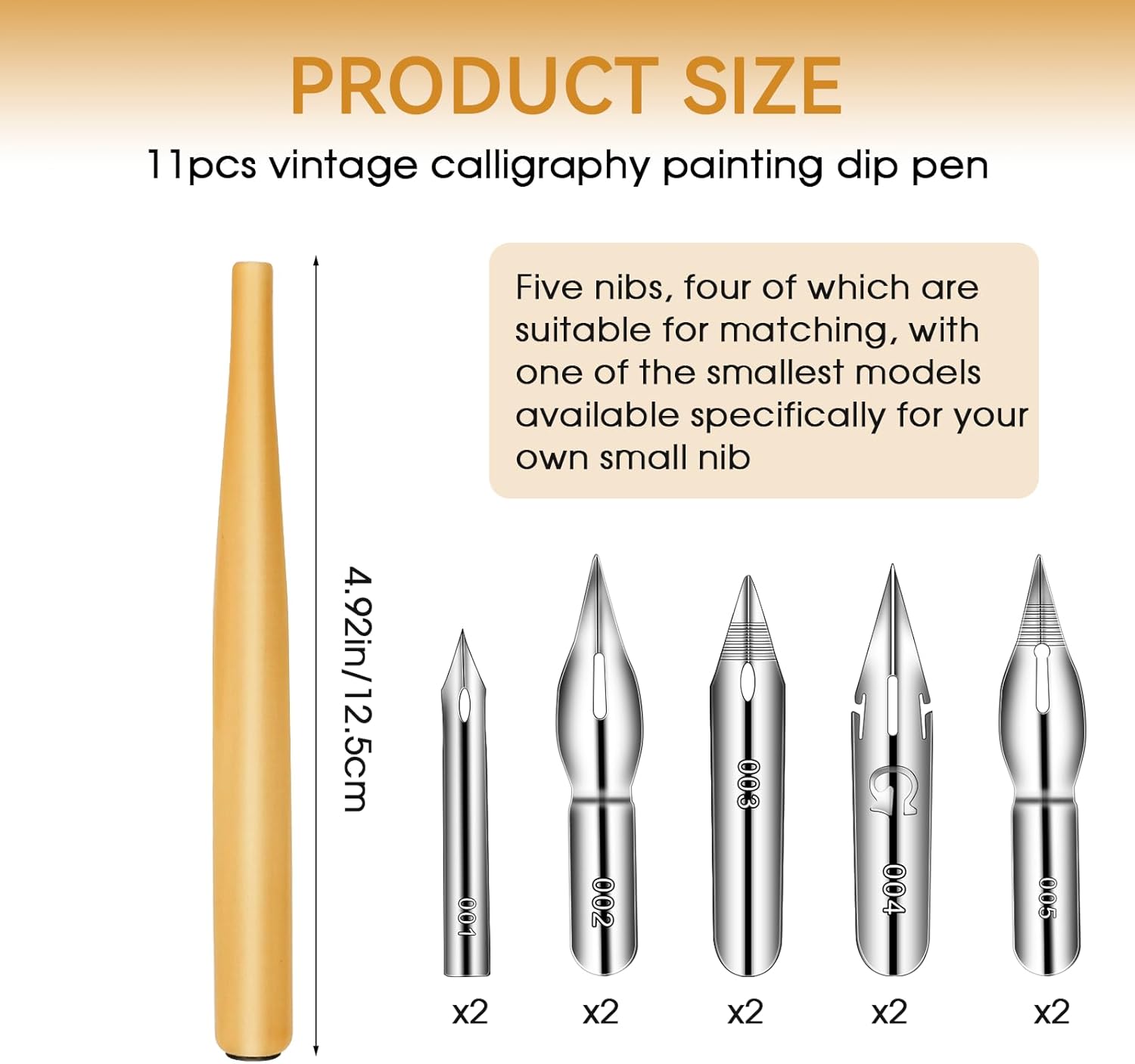- Easy to use: 5 types of pen nibs, we provide you with enough nibs, you can easily complete different styles of painting, but please pay attention to the tip of the nib when using it to avoid scratches or injuries. Use it with the included wooden support, which is both practical and can give full play to your artisticstyle.