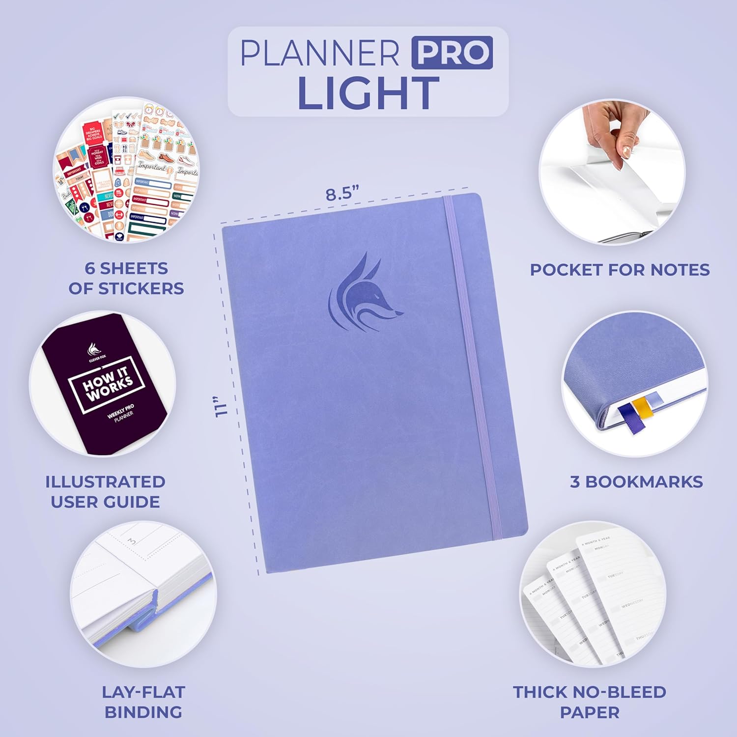 Clever Fox Planner PRO Light – Weekly & Monthly Life Planner to Increase Productivity, Time Management and Hit Your Goals, 8.5x11″ (Lavender)