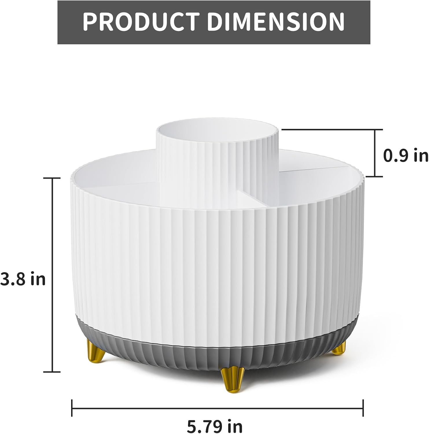 - ăMultipurpose Desktop Organizeră: This rotating storage organizer is perfect for pencils, cosmetics, bathroom necessities, toiletries, and even kitchen utensils. Try it in your craft room, playroom, laundry/utility room, and even inside bathroom cabinets or under the sink; Store extra office supplies like painting pens, correction tape, scissors, TV Remote, and more; Even headphones or a charger will no longer be lying around in the future! Maximize your vertical space and keep your desk clear