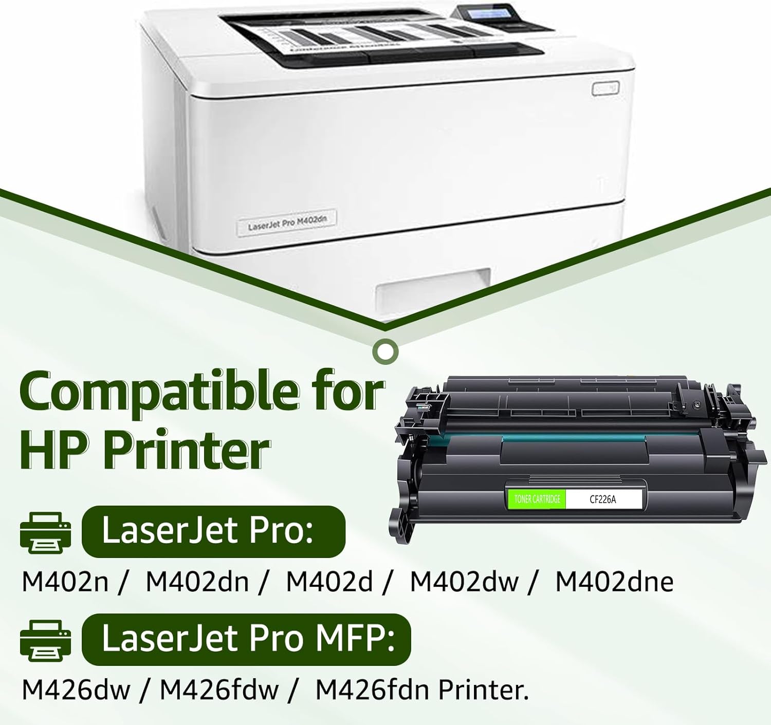 - Excellent Quality: CF226A black toner cartridge can be instantly recognized by your printers and work perfectly, making daily documents, reports, letters, graphics and photos very crisp and bright.