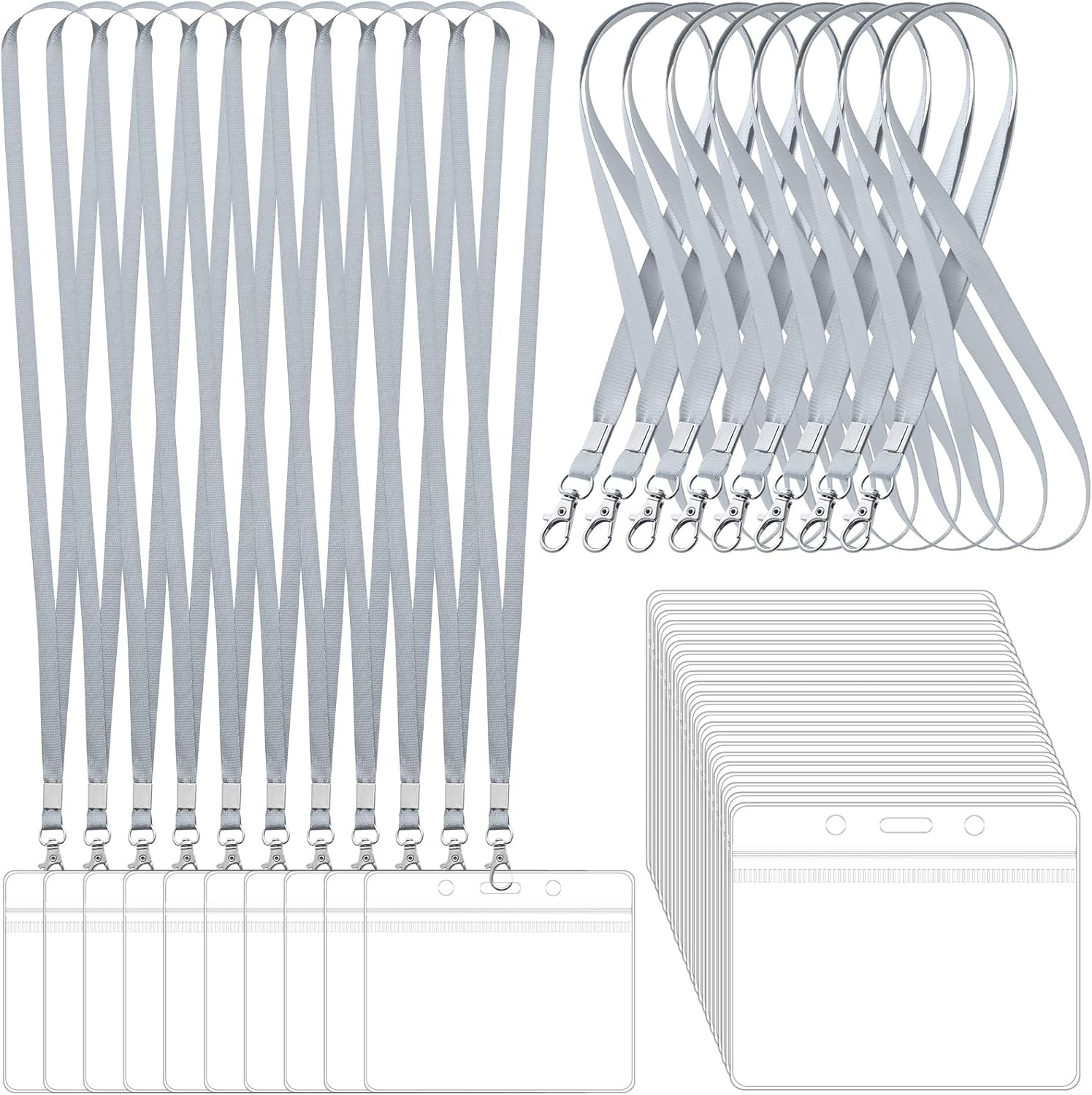 100 Pack Lanyards for ID Badges with Clear Name Tags, Reusable Lanyards Horizontal ID Card Badge Holders Plastic Name Badges for Men Women Kids Business School and Office Supplies (Gray)