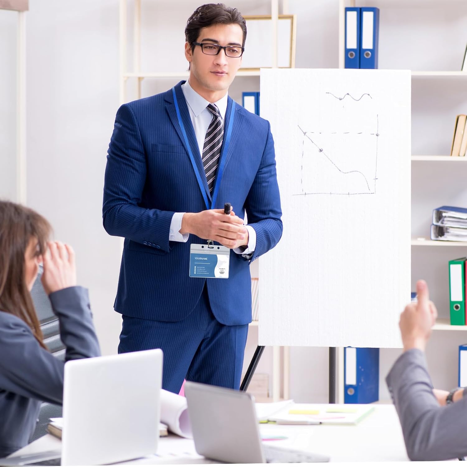 100 Pack Lanyards for ID Badges with Clear Name Tags, Reusable Lanyards Horizontal ID Card Badge Holders Plastic Name Badges for Men Women Kids Business School and Office Supplies (Blue)