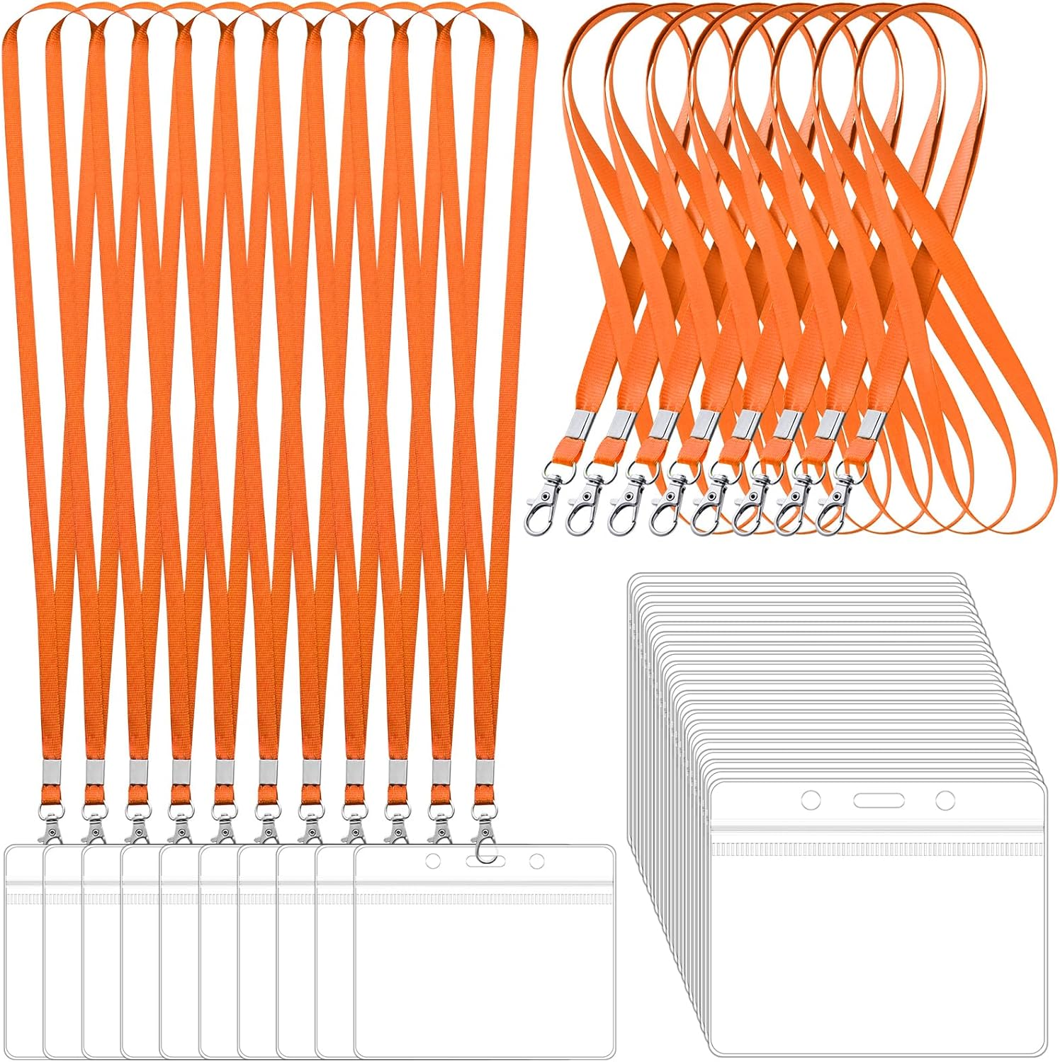 100 Pack Lanyards for ID Badges with Clear Name Tags, Reusable Lanyards Horizontal ID Card Badge Holders Plastic Name Badges for Men Women Kids Business School and Office Supplies (Orange)
