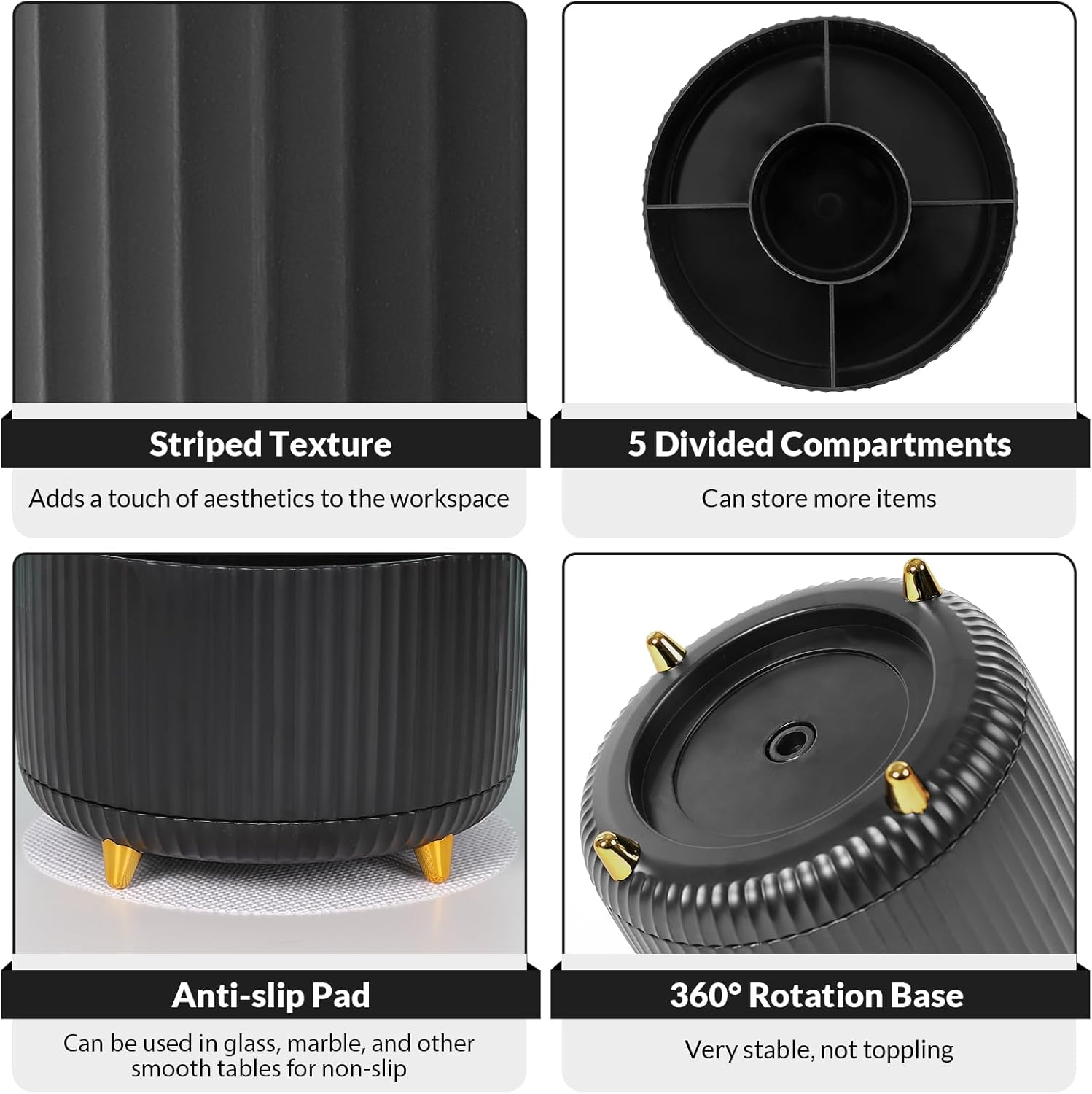 SKYDUE 360 Degree Rotating Desk Organizer, Dual-Purpose Pencil Pen Holder for Desktop, Rotating Desk Pen Organizer with 5 Slots, Office Supplies, Pencil Cup for Office, School, Home