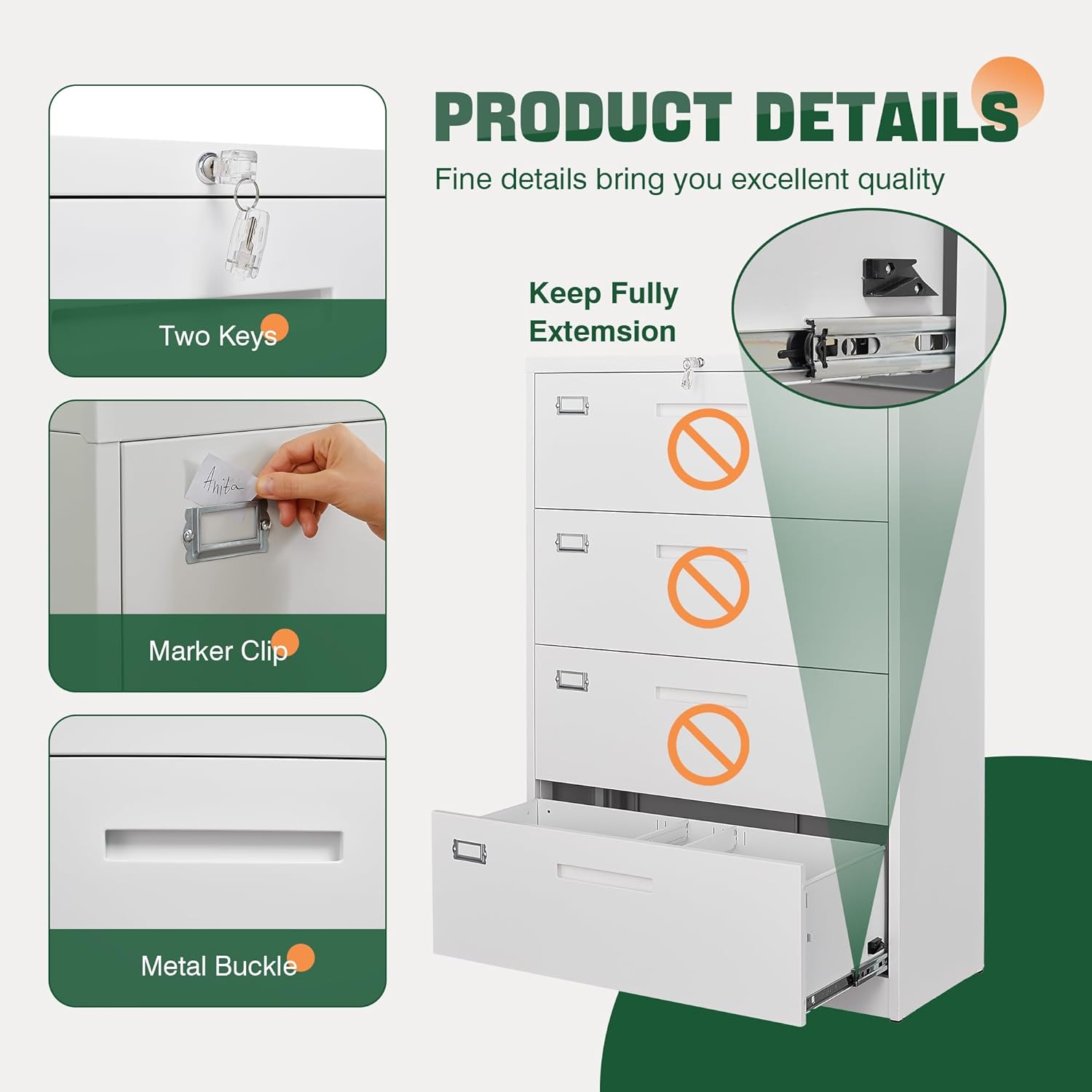 - 〖Document Storage Security〗One key to lock all drawers,each drawer can hang A4/F4/Letter/Legal and other file types;Each drawer can hang at least 150-300 files,drawer dimensions: 32.5"WX15"DX9.8"H.