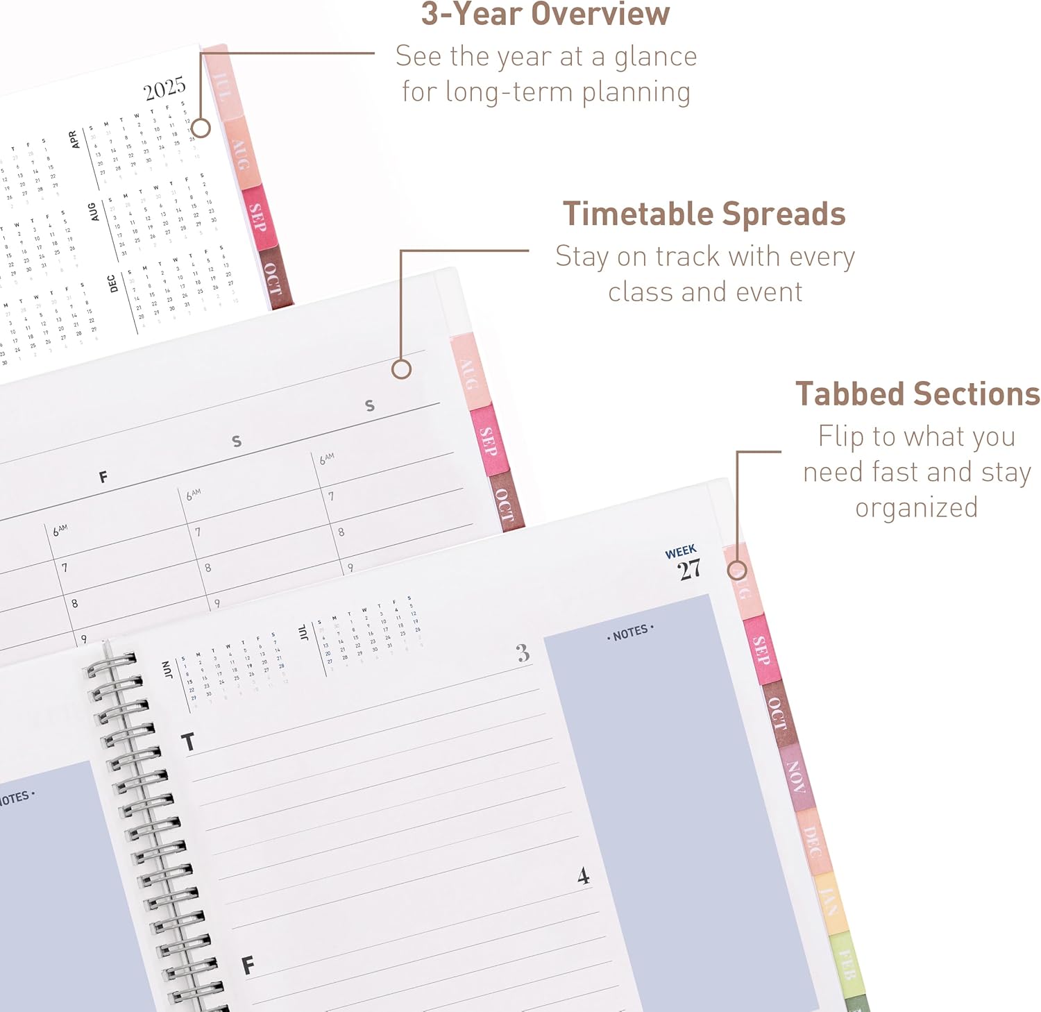 - STAY AHEAD WITH BUILT-IN EXTRAS: Never miss a milestone again. This sleek calendar 2025-2026 includes U.S. holidays, a full 3-year overview, and forward-looking weekly layouts that preview the next month. A reliable 2025 planner that keeps your future visible, from family vacations to project deadlines. Feel the peace of knowing everything’s under control.