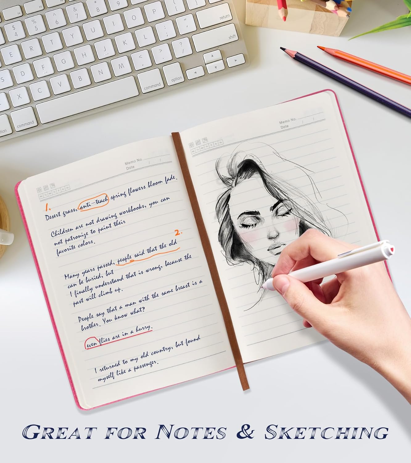 - 【180° Lay Flat Design】The 180° lay flat design makes writing easier, reading more convenient, and taking notes more efficient.At the same time, the hardcover notebook is designed with elastic closure band to make it tightly closed to protect your content, and the inner paper will not be curled and kept flat.