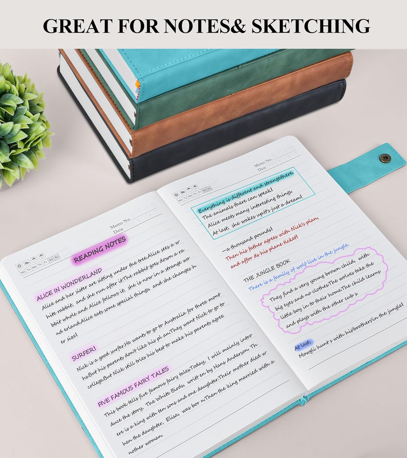 - 【CONVENIENT FEATURES FOR ORGANIZATION】:The leather journal includes 3 ribbon bookmarks, allowing you to easily mark important pages or sections. The 180° lay-flat design ensures that the notebook lies flat on any surface, making it comfortable to write in for extended periods. The metal snap closure design keeps the notebook securely closed, protecting your notes from damage.These features make the notebook a versatile tool for various settings, from work and school to personal use.