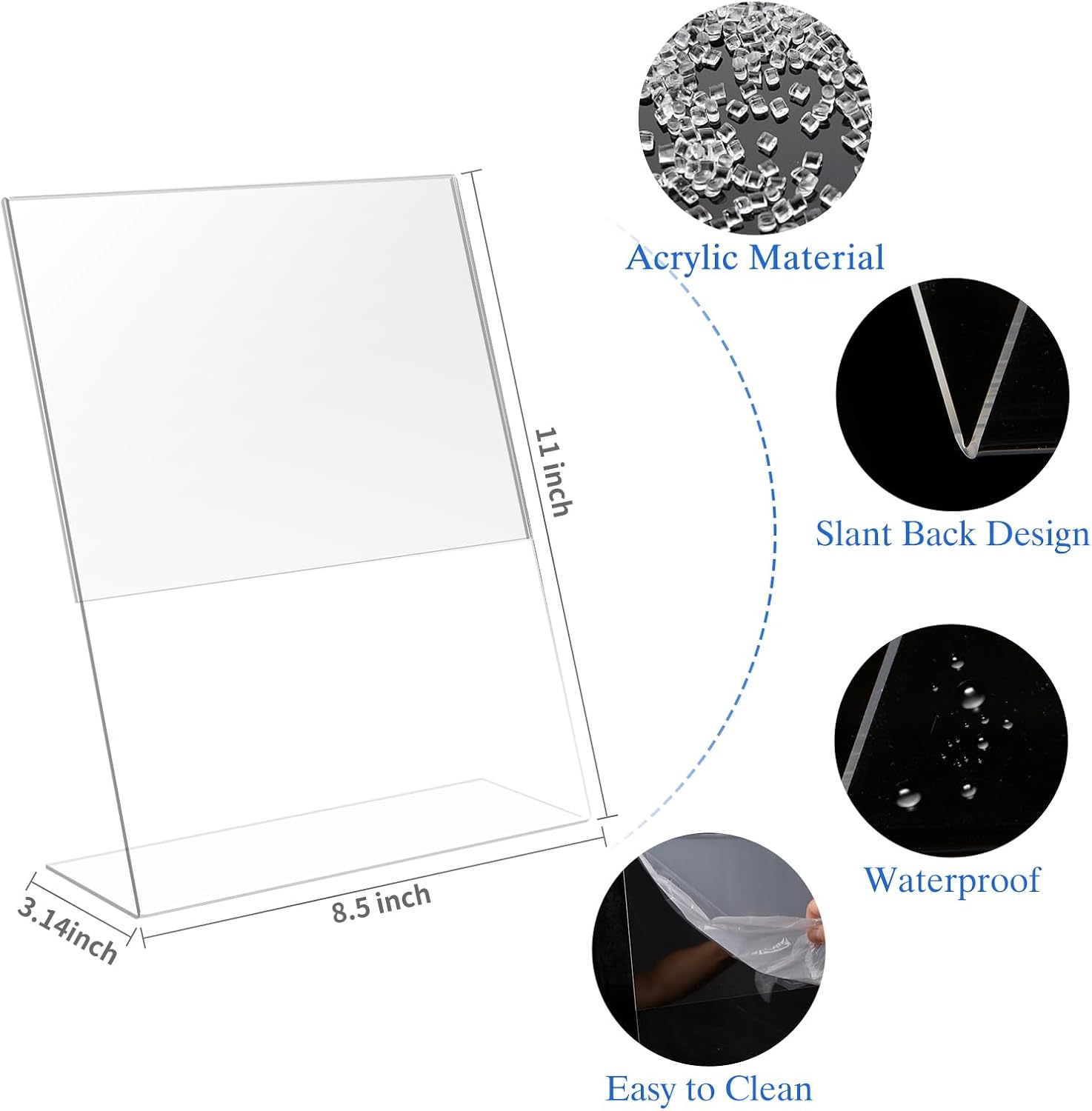 - Quality Assurance: This package contains eighteen. 8.5 x 11 acrylic sign holders. 12 months after-sale service, If there is any damage or other problems, please feel free to contact us, we will solve the problem for you and give you a satisfactory answer.