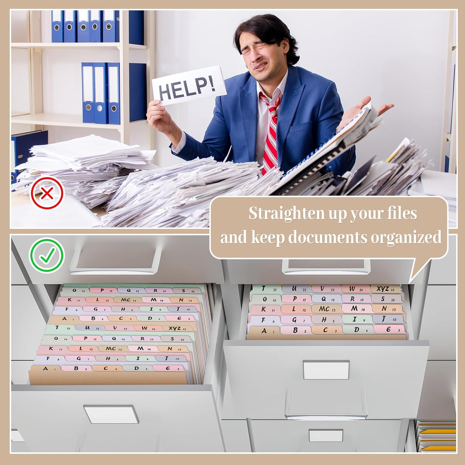 - Enhanced Efficiency and Convenience: each alphabetical file organizer is equipped with 1/5 cut top tabs preprinted with A-Z, allowing for easy classification, reduced searching time, and elevated productivity; They are designed for desktop and drawer filing, hence promoting a tidy and organized environment