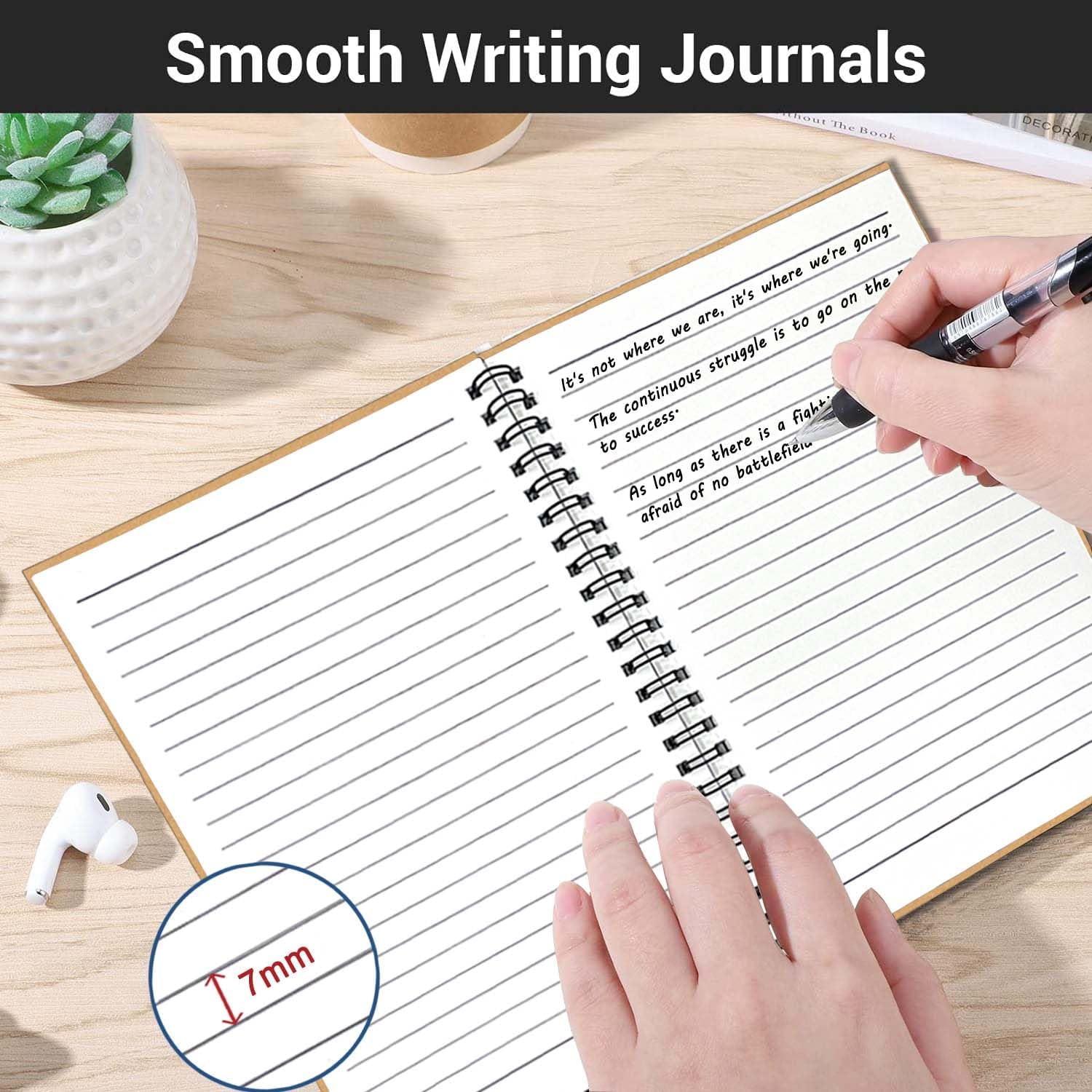 - 📚【SPIRAL JOURNAL NOTEBOOK】The wide ruled spiral bound notebooks can be lay flat and opened 360°freely without folding creases, also facilitate you to rip pages, the double-line spiral binding makes the edge firm and prevents the paper from scattering