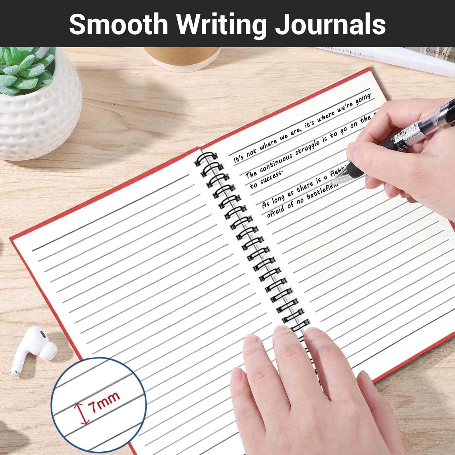 - 📚【SPIRAL JOURNAL NOTEBOOK】The wide ruled spiral bound notebooks can be lay flat and opened 360°freely without folding creases, also facilitate you to rip pages, the double-line spiral binding makes the edge firm and prevents the paper from scattering