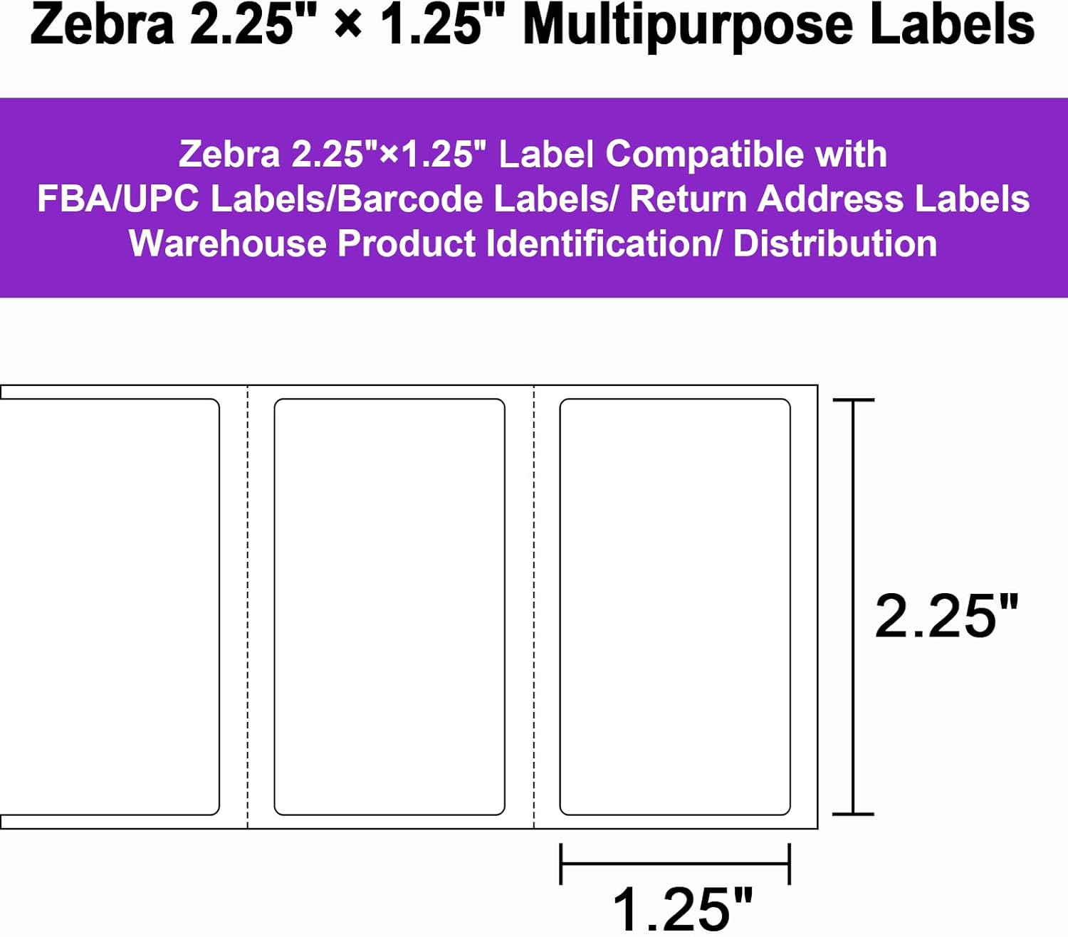 - Multipurpose: 2.25x1.25 inch Label Rolls are perfect as shipping address labels, barcode labels. It can be used for envelope, mail, letters, and parcel, temporary and indoor signage, packaging and other retail uses
