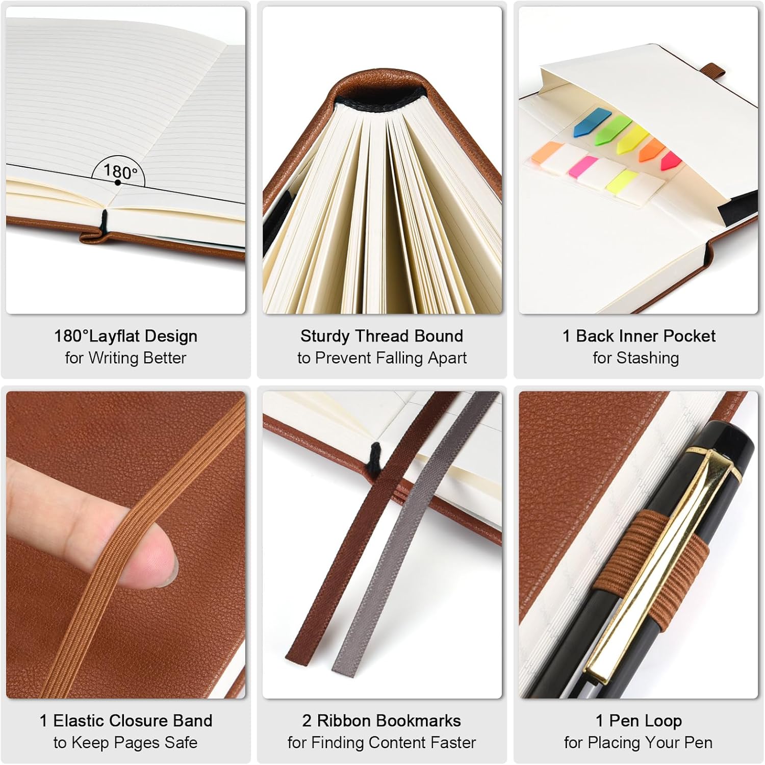 - 【User-Centered Design】5 Contents Pages for logging more entries; 2 Ribbon bookmarks for quick content reference; 1 Elastic closure band for secure page keeping; 1 Pen holder to keep your pen always handy; 1 Back Inner pocket for storing notes and small items; 8 Sheets of perforated page for versatile use.