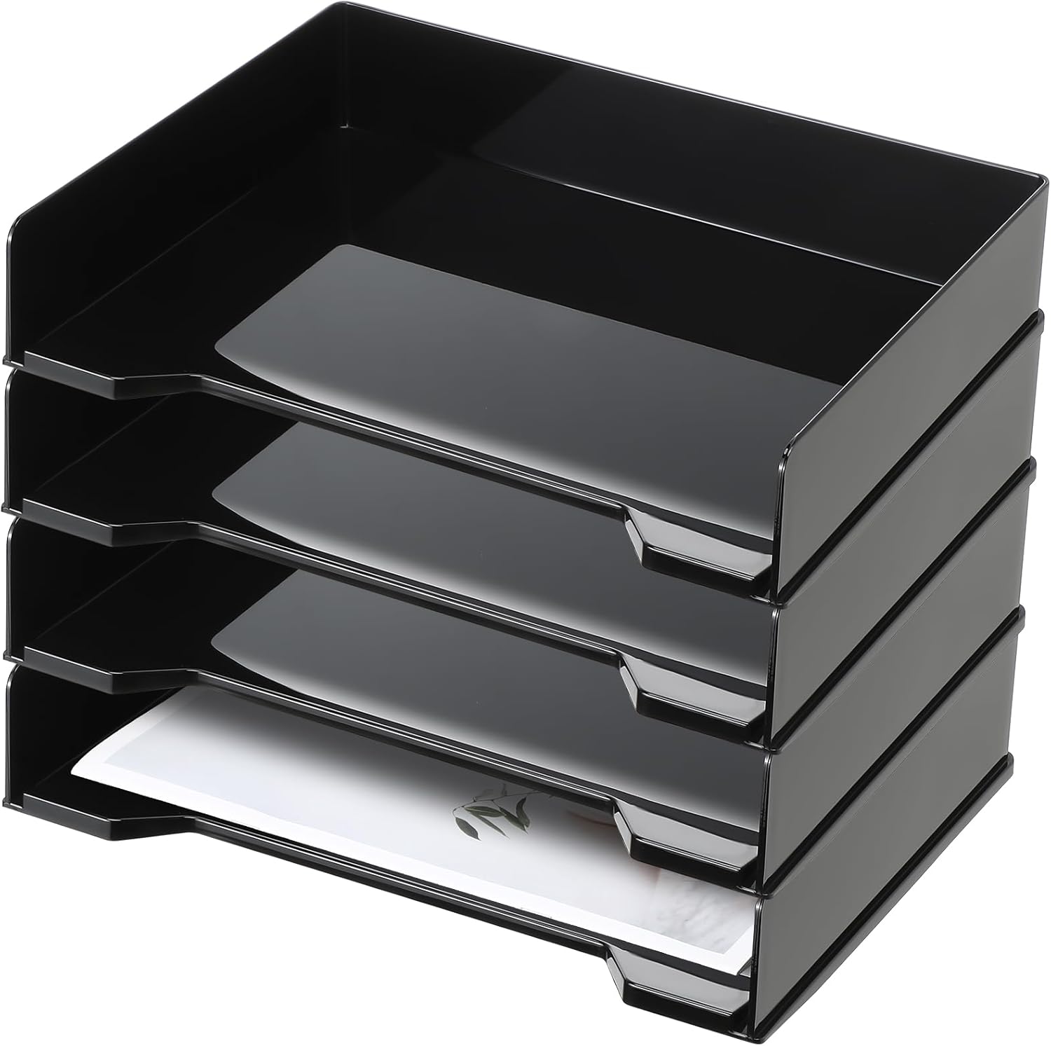 4 Pcs Stackable Letter Tray Rectangular Plastic Desk Organizer 13 x 9.5 x 2.6 in Paper Holder File Tray Accessories Rack for Desktop Office Desk Drawers (Black)