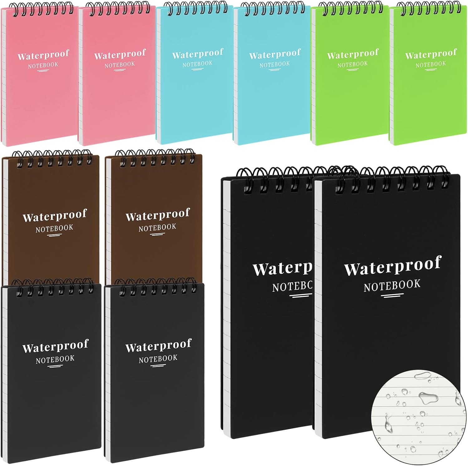- 100% Waterproof Notebook:This 12-pack of waterproof notepads contains 100 pages (50 sheets) per notebook, designed to meet your needs. Our all-weather notebook can withstand water, sweat, grease, mud, and even laundry accidents without turning to mush. The small spiral notebook remains undamaged even after prolonged exposure to water. It is truly applicable in all weather conditions, allowing you to write smoothly in humid environments and record field data, making it very suitable for use in the wild.