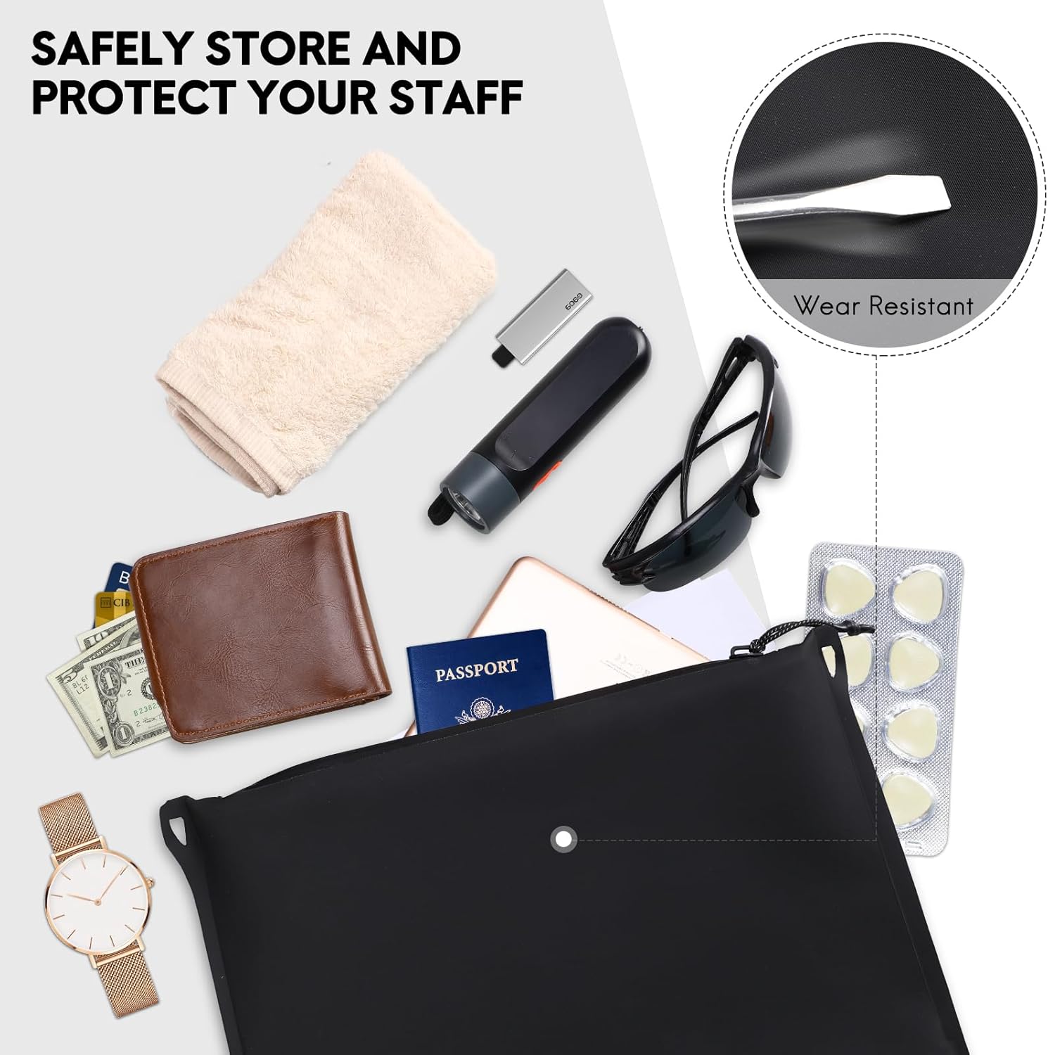 - 100% waterproof and wear resistant zipper pouch made of reinforced polymer material, suitable to protect your belongings from exposure, dirt, moisture and from getting lost