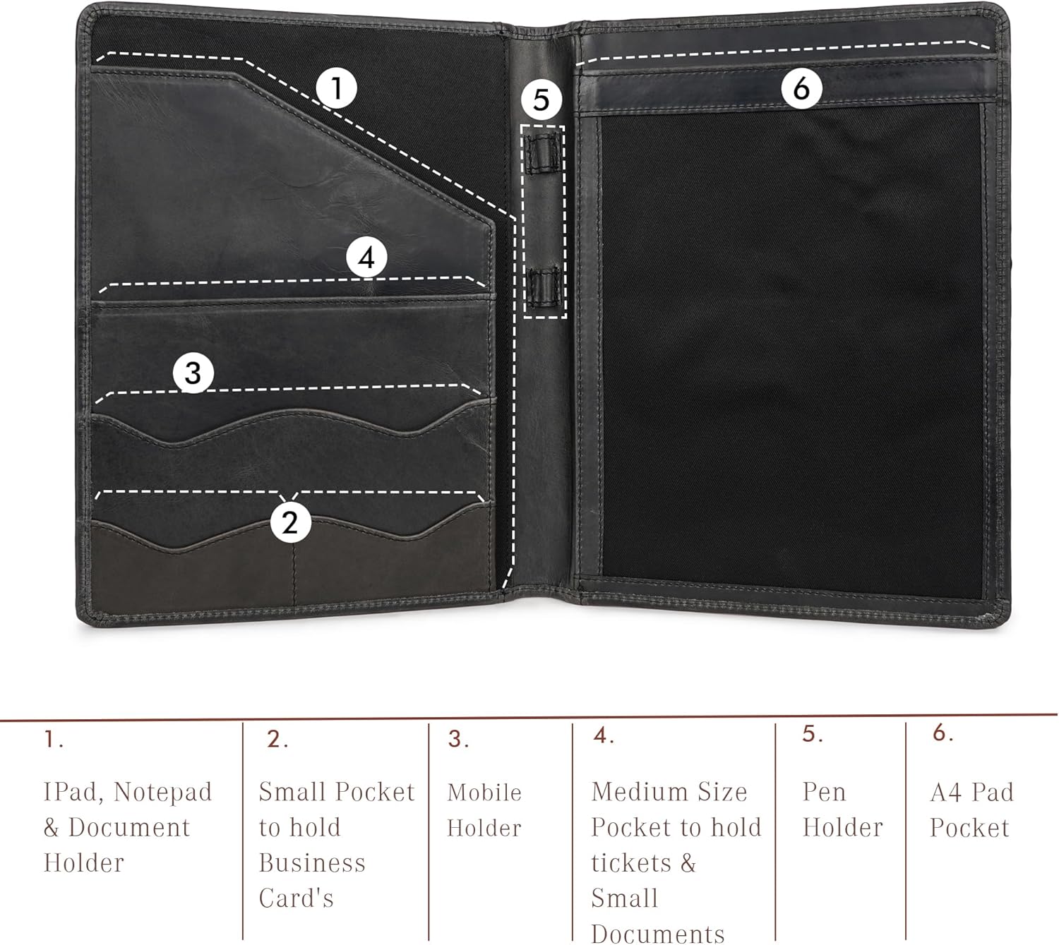- SEAMLESS ORGANIZATION – Organize all your business supplies, letters, loose pages, IDs, envelopes, papers, documents & business cards with ease using dedicated internal pockets & compartments in this padfolio.