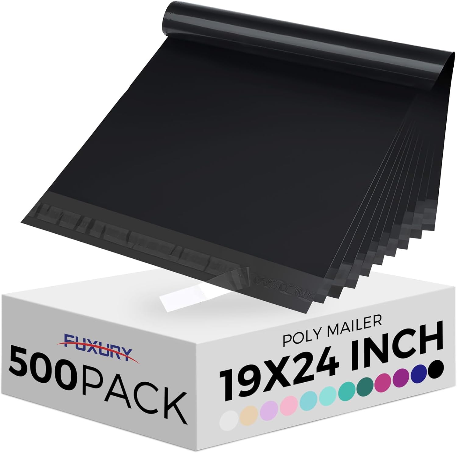 - 【19x24 Poly Mailers】The Fuxury 19x24 plastic shipping bags,pack of 500pcs,with black color.Suitable for multiple products shipping like handicrafts,clothing,hats,blankets,shoes.Perfect for small business, boutiques,and online sellers.