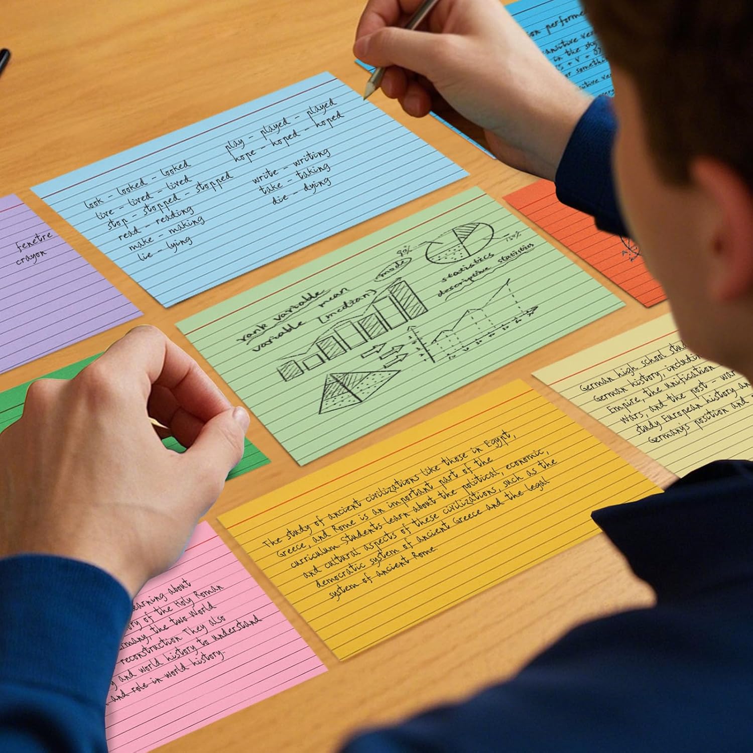 - High Quality: Crafted from thick, high-quality paper, these double-sided index cards prevent ink from bleeding through. Ideal for TestDaF/Abitur year-round exam prep, ensuring clear, legible notes every time