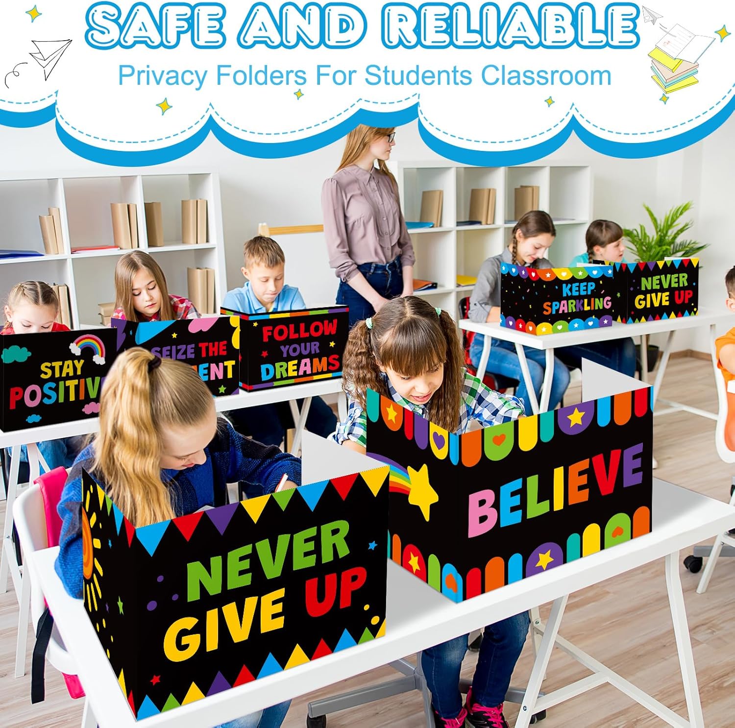 Honoson 24 Pcs Bulk Inspirational Privacy Folders for Students Cardboard Test Privacy Boards Motivational Words Desk Dividers Shield for Classroom School Study Supplies, 6 Styles(Colorful)