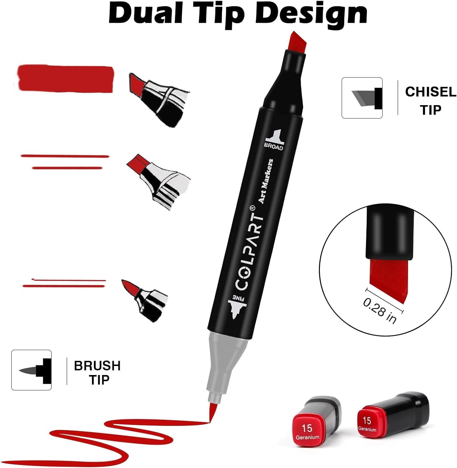 - 【Dual Tips Alcohol Markers】Dual Tips Art Markers Design allows you to make thick and thin lines without changing markers.Includes Fine tip 1mm and Broad tip 6mm twin tips for precise highlighting, sketching and underlining. Thin markers can be used to write and hook line while thick art markers professional are suitable for drawing and coloring.