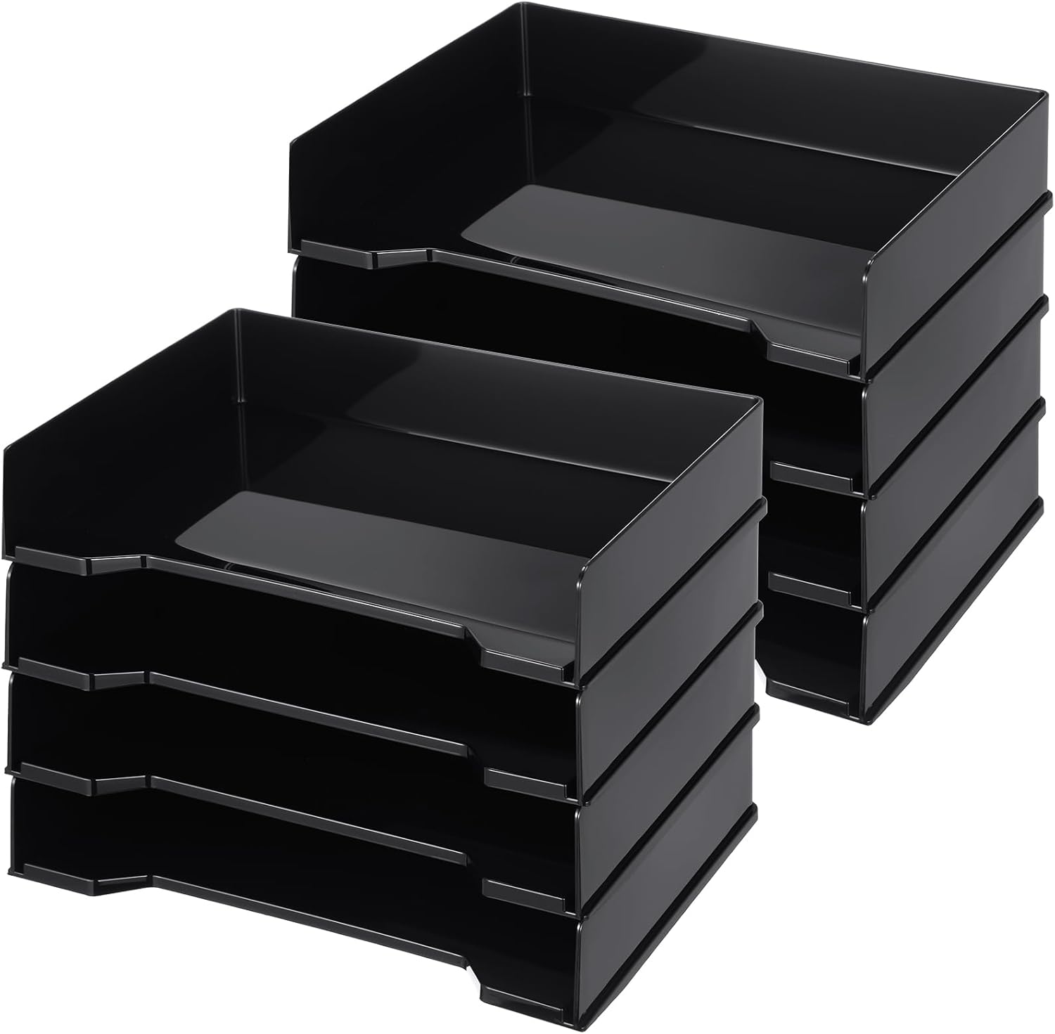 8 Pcs Stackable Letter Tray Rectangular Plastic Desk Organizer 13 x 9.5 x 2.6 in Paper Holder File Tray Accessories Rack for Desktop Office Desk Drawers (Black)