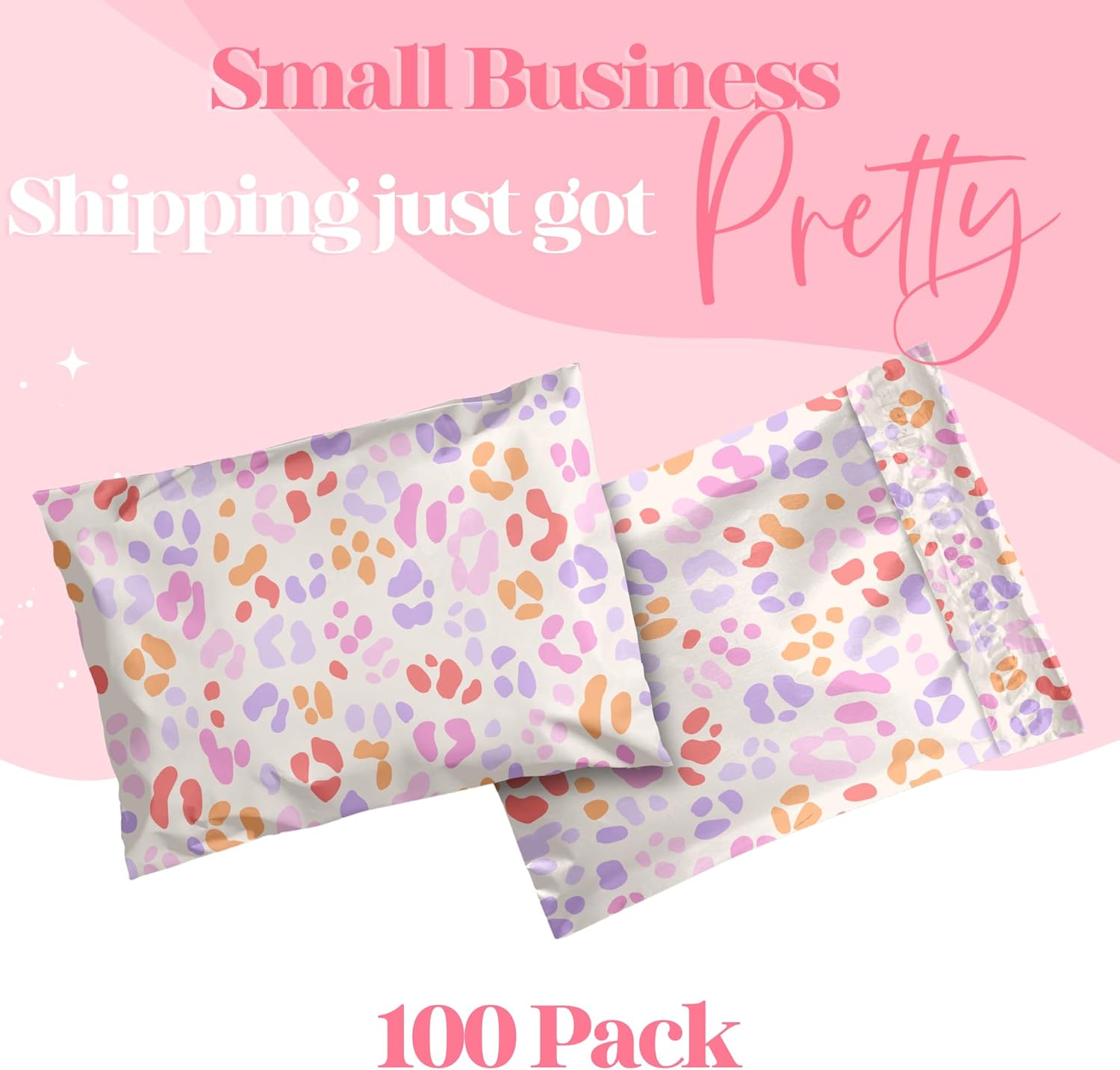 10x13 Designer Poly Mailer 100 Pack Heavy Duty Waterproof Self Seal Shipping Bags for Small Business Large Mailing Envelopes Bulk Tear Resistant Cute Packaging Preppy Leopard