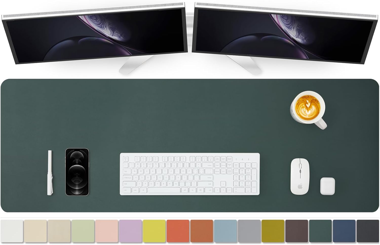 Large Desk Mat - 47.2"x 17" Non-Slip PU Desk Pad for Office and Home - Ideal for Large Mouse Pad and Desk Mats on Top of Desks(Dark Green)