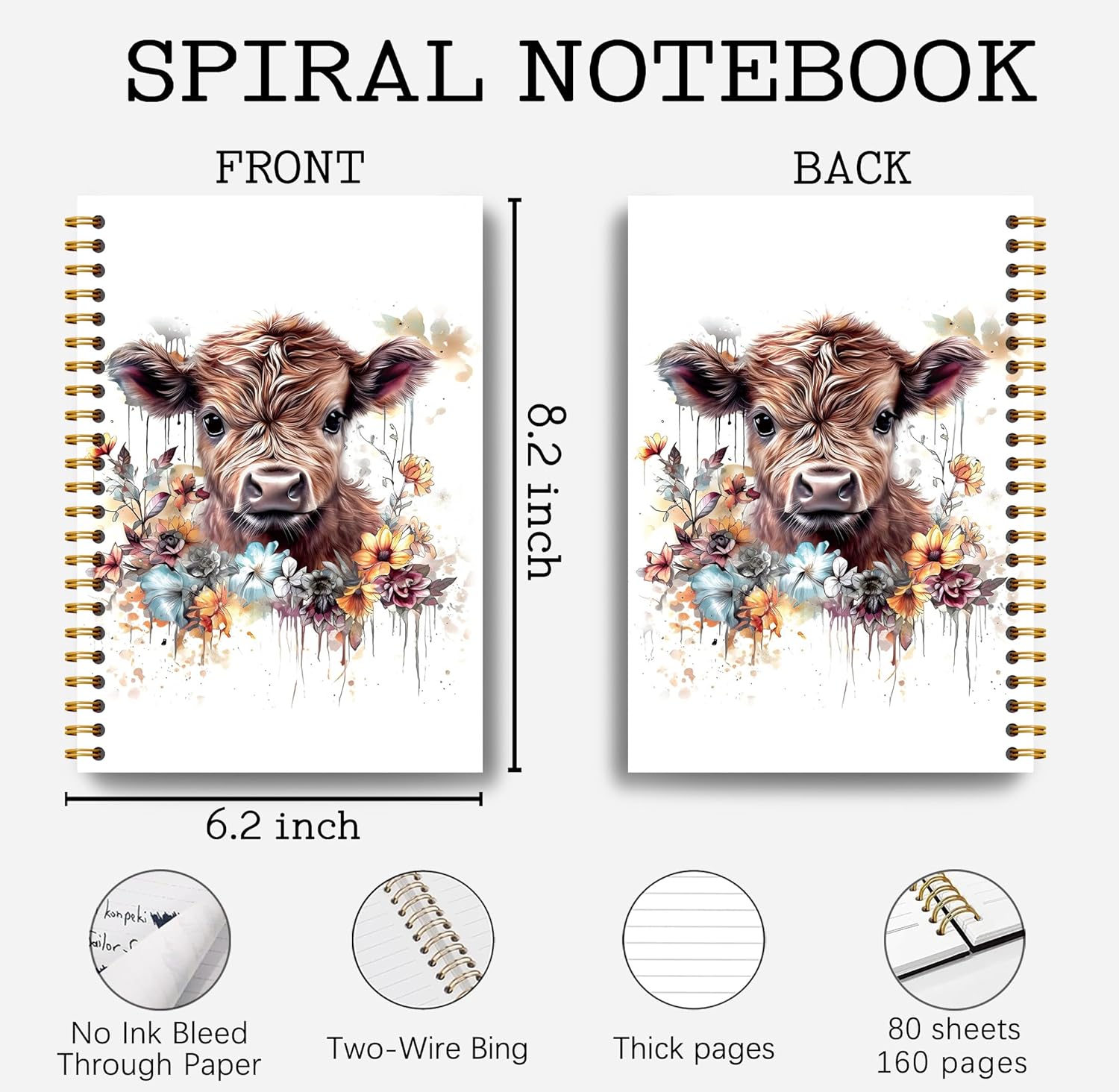 Highland Cow Notebook Journal - Highland Cow Gifts, Floral Spiral Journal Notebook 5.5×8.3, Cow Gifts for Cow Lovers, Cow Gifts for Women, 164 Pages
