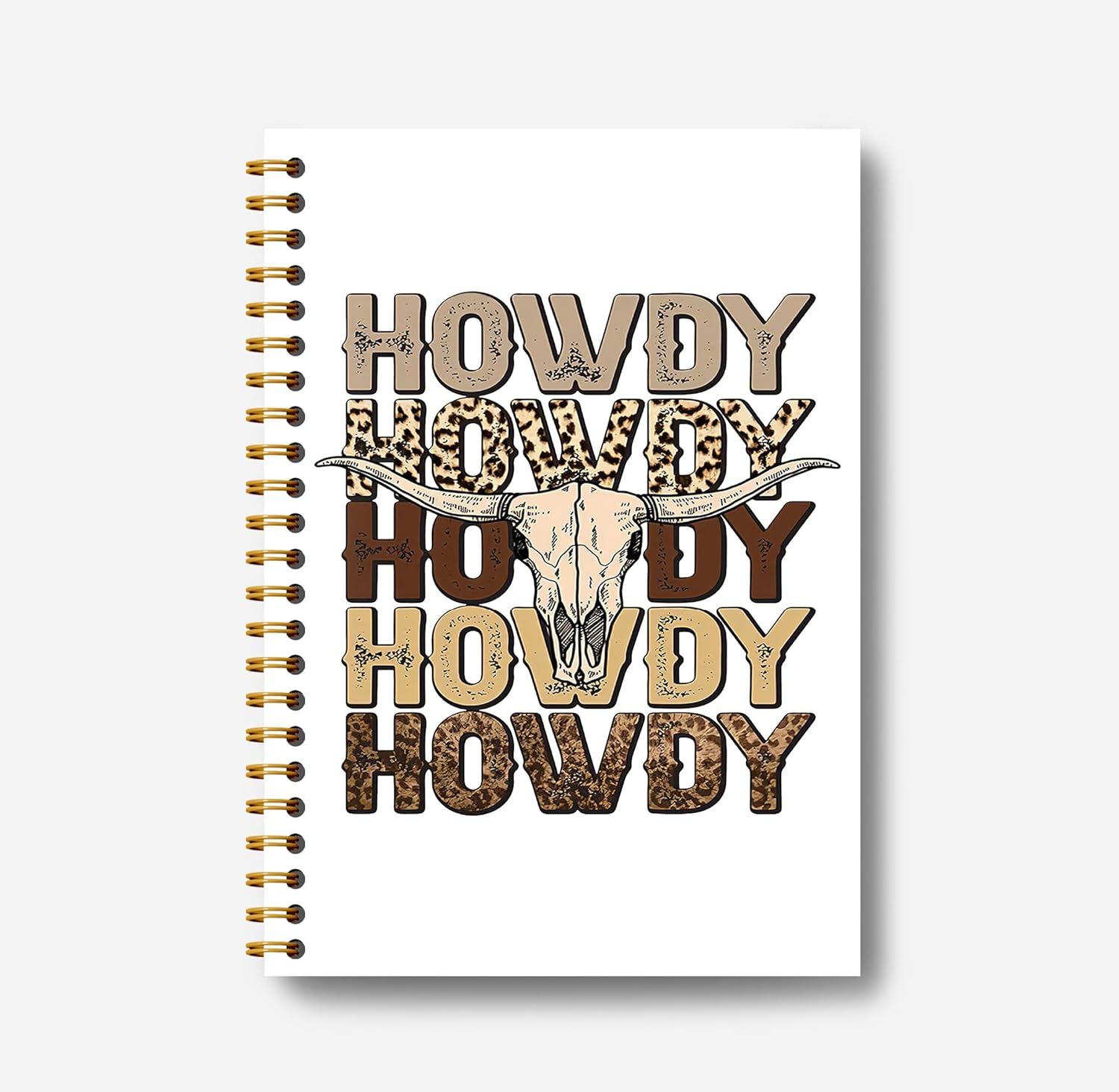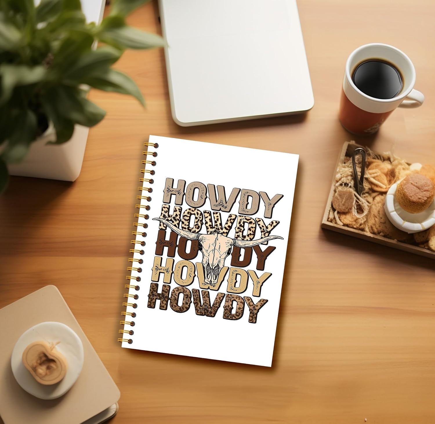 Howdy Western Notebook Journal 164 Pages - Western Gifts for Women Cowboy Cowgirl, Western Cool Notebook, College School Supplies, 5.5×8.3 Notebook Spiral Bound