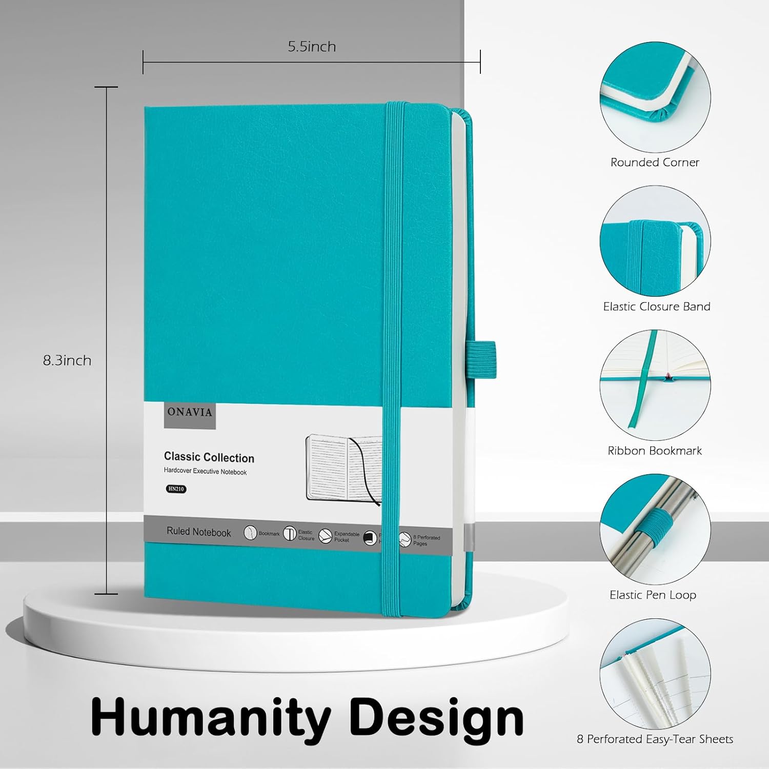 - 【Humanity Detail Design】ONAVIA A5 journal notebooks for work includes 1 Ribbon Bookmark that can help you mark the exact spot you left off. 1 Elastic Pen Loop ensures that you always have a pen or pencil readily available when you need to jot down a note. 1 Expandable inner pocket for storing loose items like notes, bills, receipts, appointment cards, and more