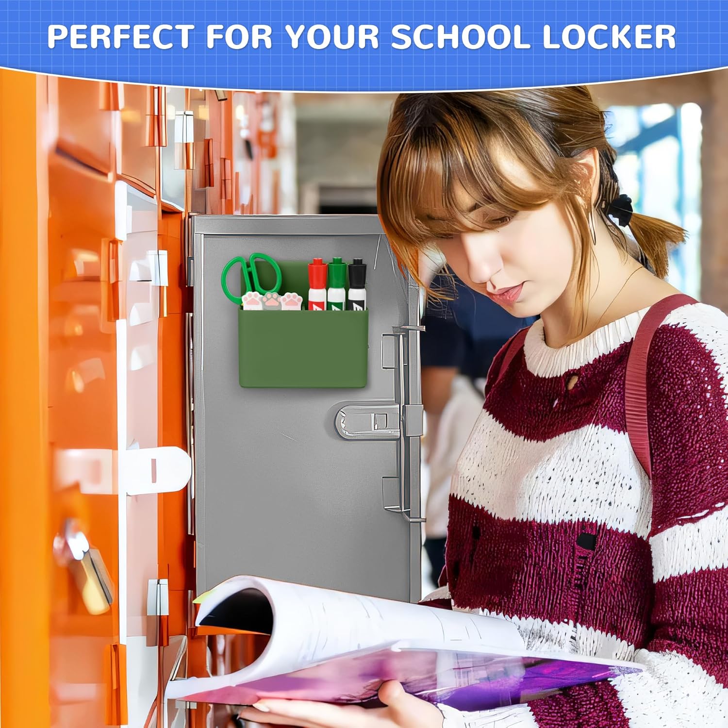 Magnetic Dry Erase Marker Holder, Magnetic Pen Marker Holder for Whiteboard, Fridge, Locker Accessories, School, Office, Home, Magnet Pen Cup,1 Pack, Army Green