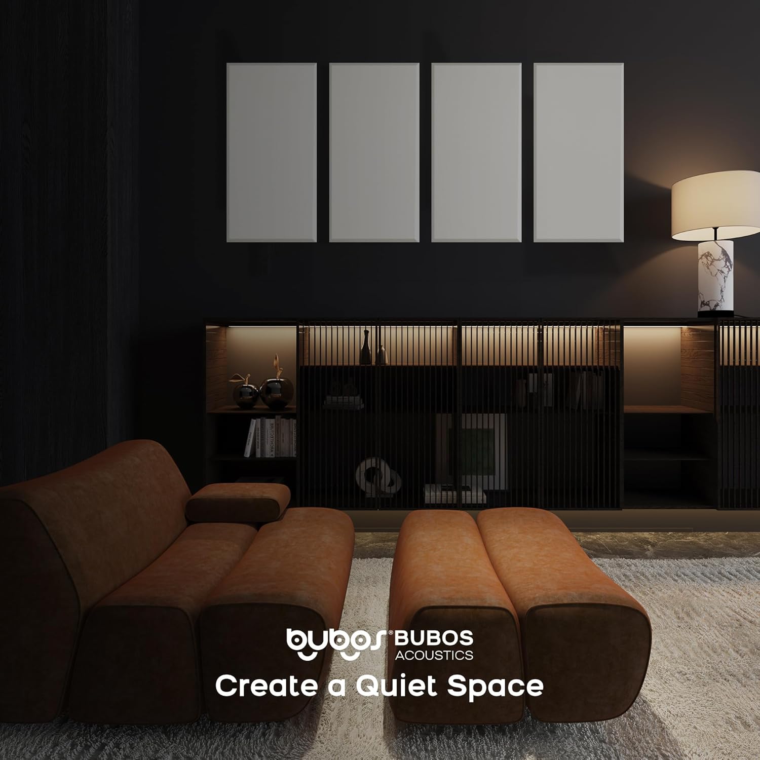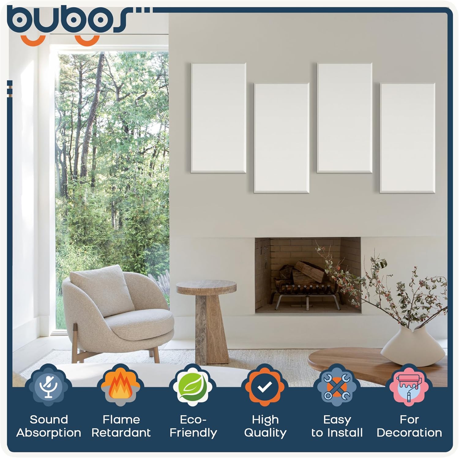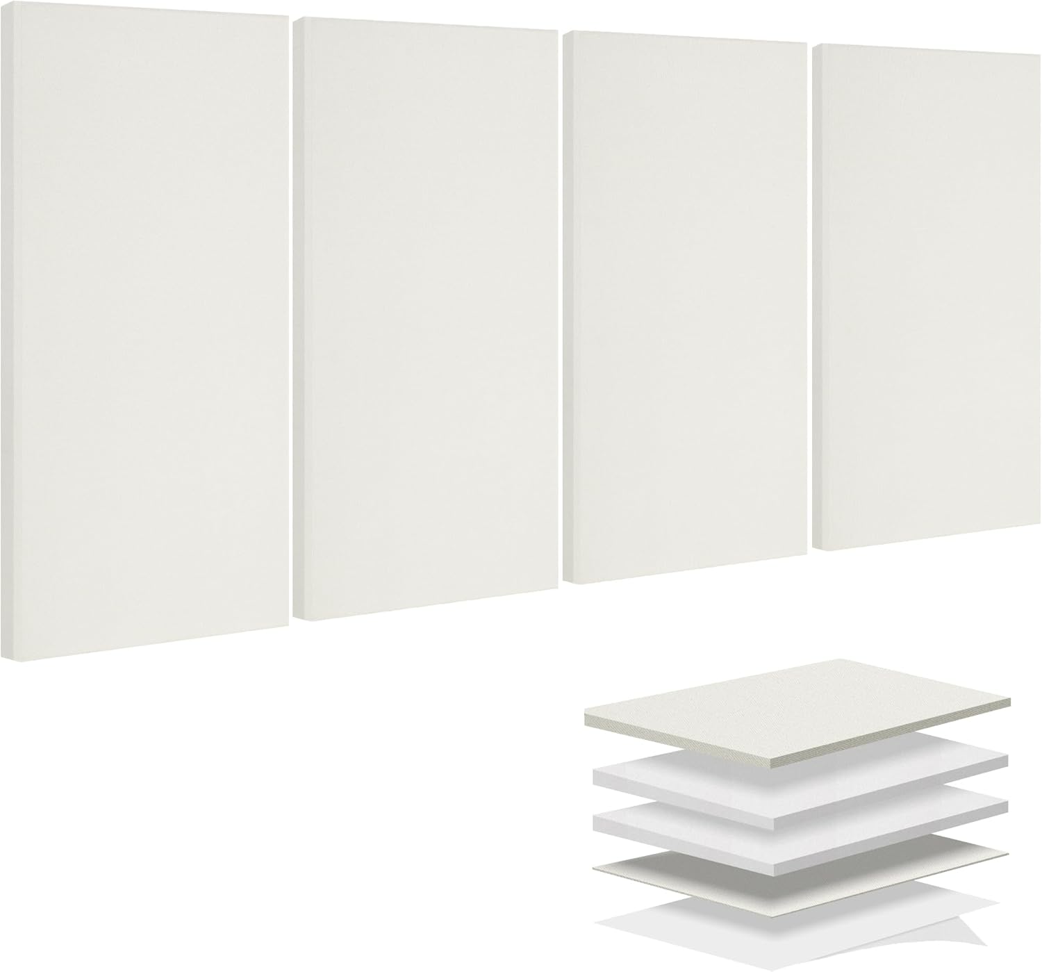 BUBOS 4 PCS Acoustic Panels,23.6''x11.8'' Fabric Soundproof Wall Panels,Self-adhesive Sound Absorbing Panels for Studios, Office, Home Theater, Fabric-Clad Off-White