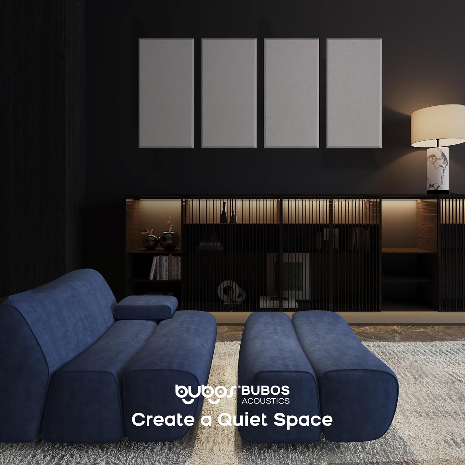 BUBOS 4 PCS Acoustic Panels,23.6''x11.8'' Fabric Soundproof Wall Panels,Self-adhesive Sound Absorbing Panels for Studios, Office, Home Theater,Fabric-Clad Linen