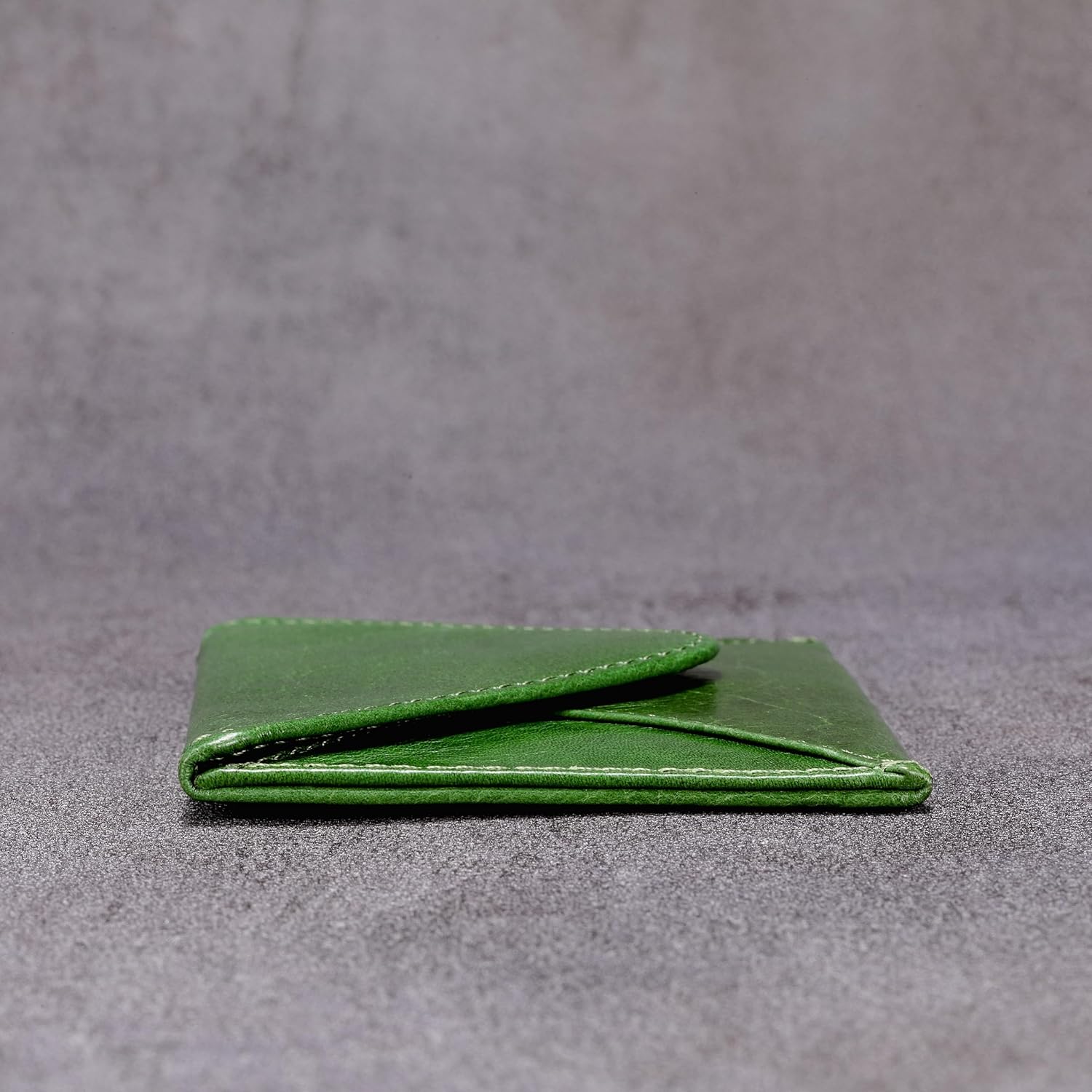 HISCOW Envelope Business Card Case with Magnet Closure - Italian Calfskin (Green Vegetable-Tanned Leather)