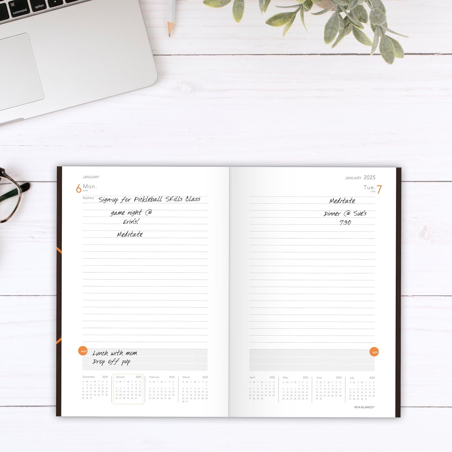- DAILY VIEWS – One page per day format features ruled planning sections with space for HOT Spot reminders to track important details. Full year reference calendar on each two page spread. Pages measure 5" x 8-1/4".