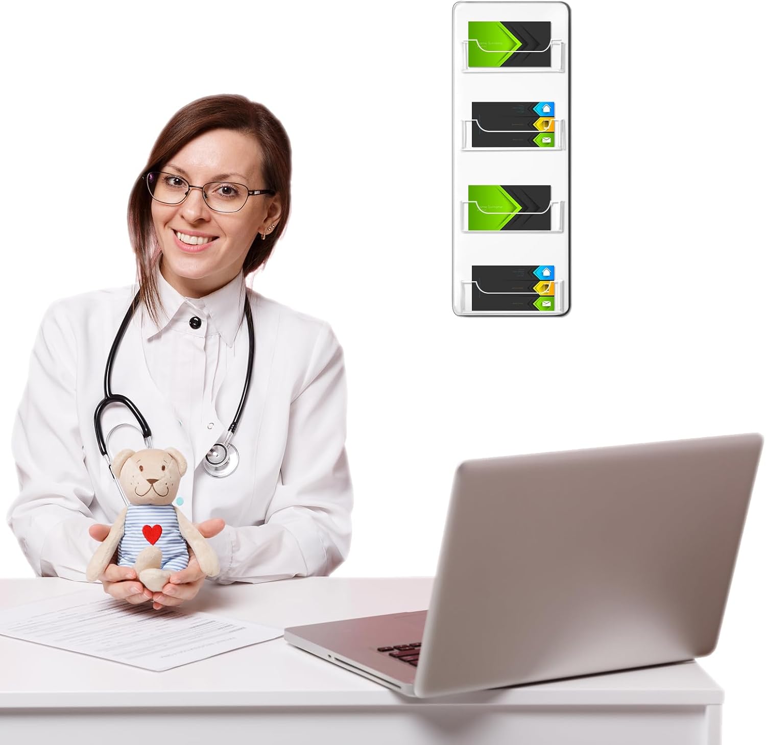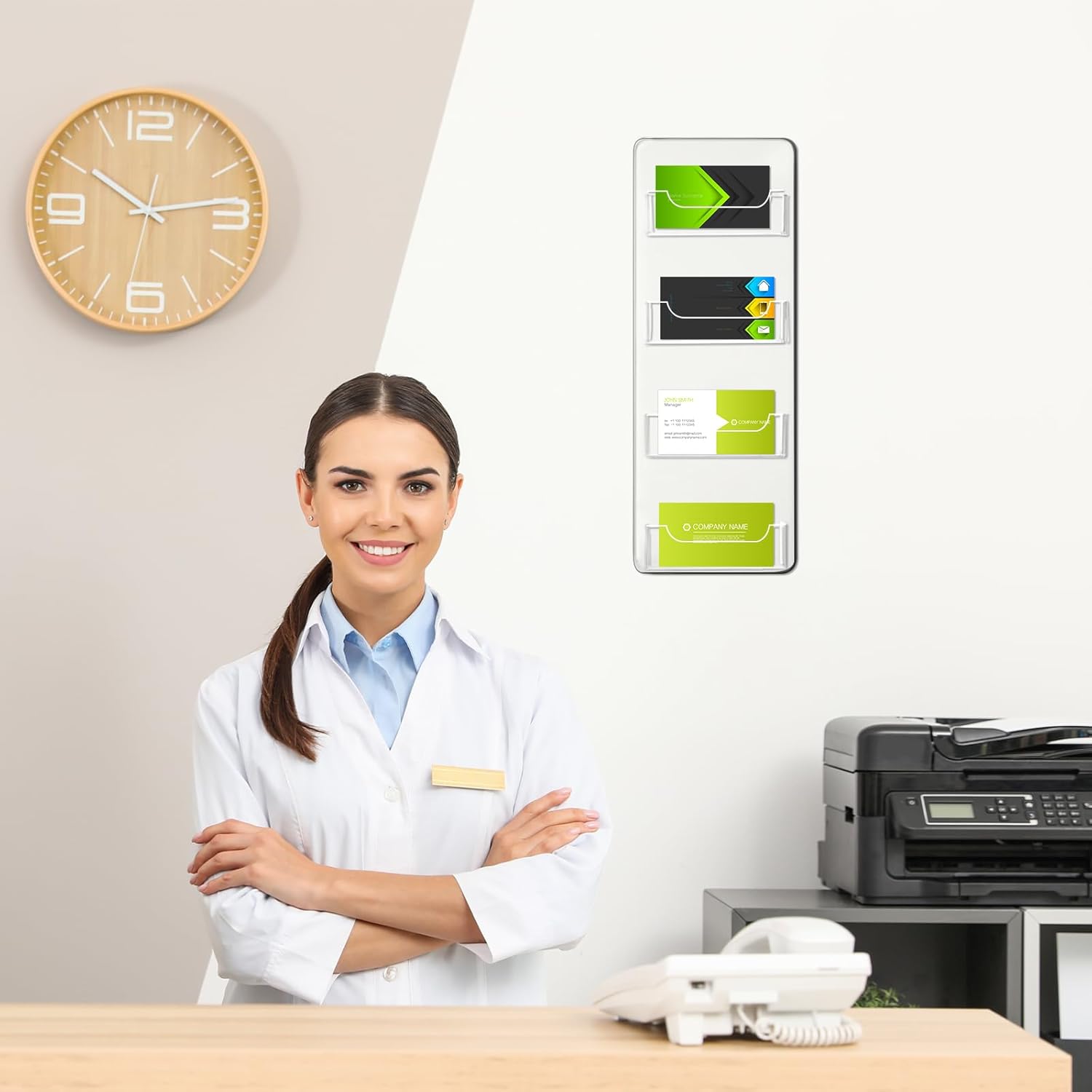 Hillban Acrylic Business Card Holder Wall Mount Clear Sticker Display Rack Multiple Card Holders Clear Acrylic Organizing Sticker Display Stand Pre Drilled(4 Pockets)