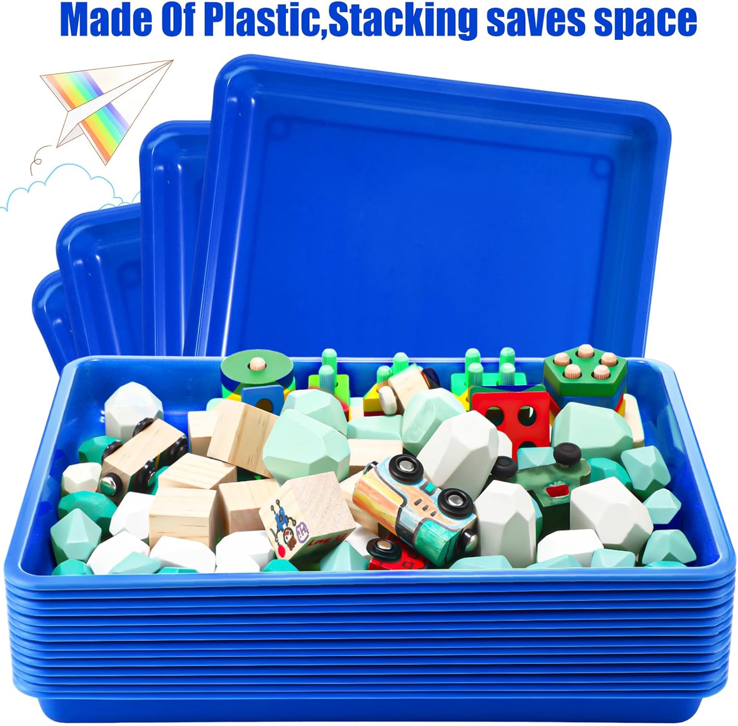 Maitys 15 Pcs Flat Plastic Trays 16.1 x 11.8'' Sensory Storage Tray Paper Stackable Classroom Bins for Office Home Organizer Arts and Crafts Supplies(Blue)