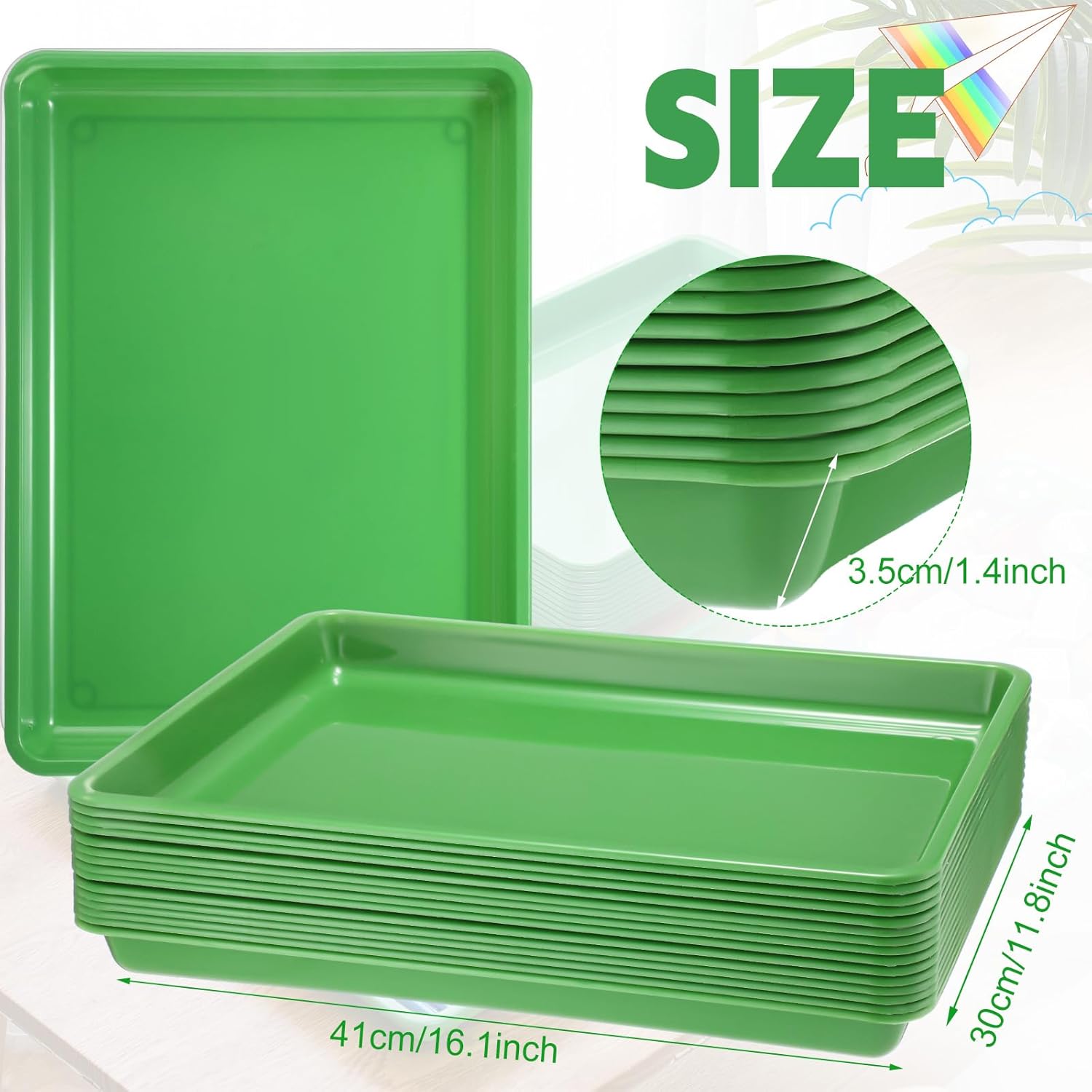Maitys 15 Pcs Flat Plastic Trays 16.1 x 11.8'' Sensory Storage Tray Paper Stackable Classroom Bins for Office Home Organizer Arts and Crafts Supplies(Green)