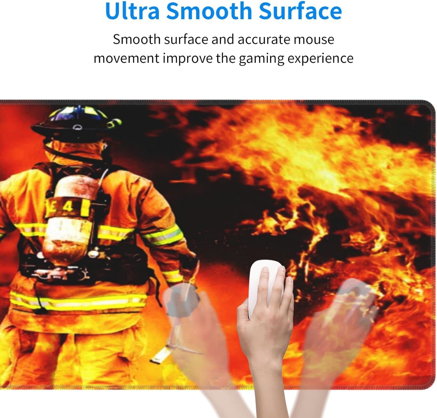 Fire Firefighter Fireman Mouse Pad, Large Big Gaming Mouse Pad Desk Pad, Mousepad with Non-Slip Rubber Base, Extended XXL Mouse Mat for Computer Laptop Office Accessories