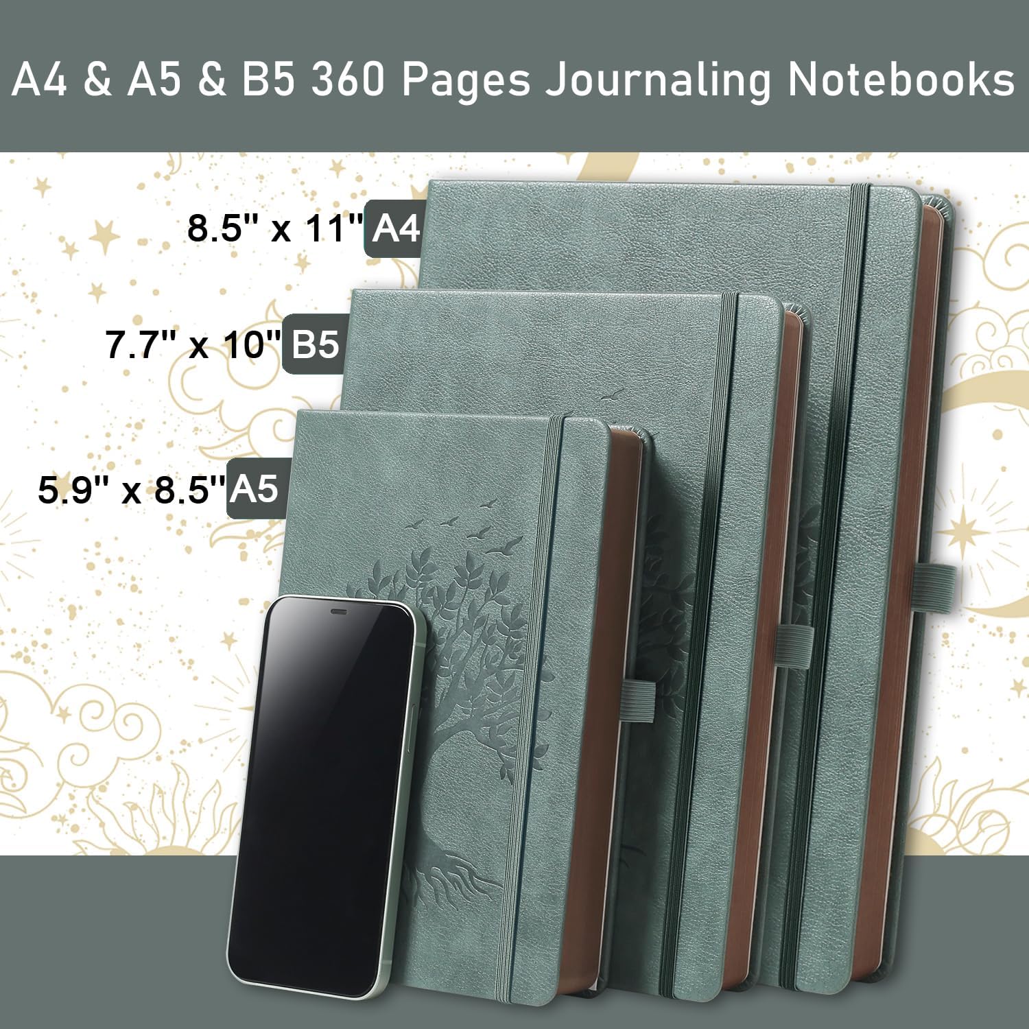 - 360 Pages 100Gsm Thick Lined Journal: Brown edge design with Pen, Large A4 size (8.5" x 11"), 8mm space classic college ruled notebook, support 180° Lay Flat, 2 bookmarks, 1 elastic closure band, 1 inner pockt.